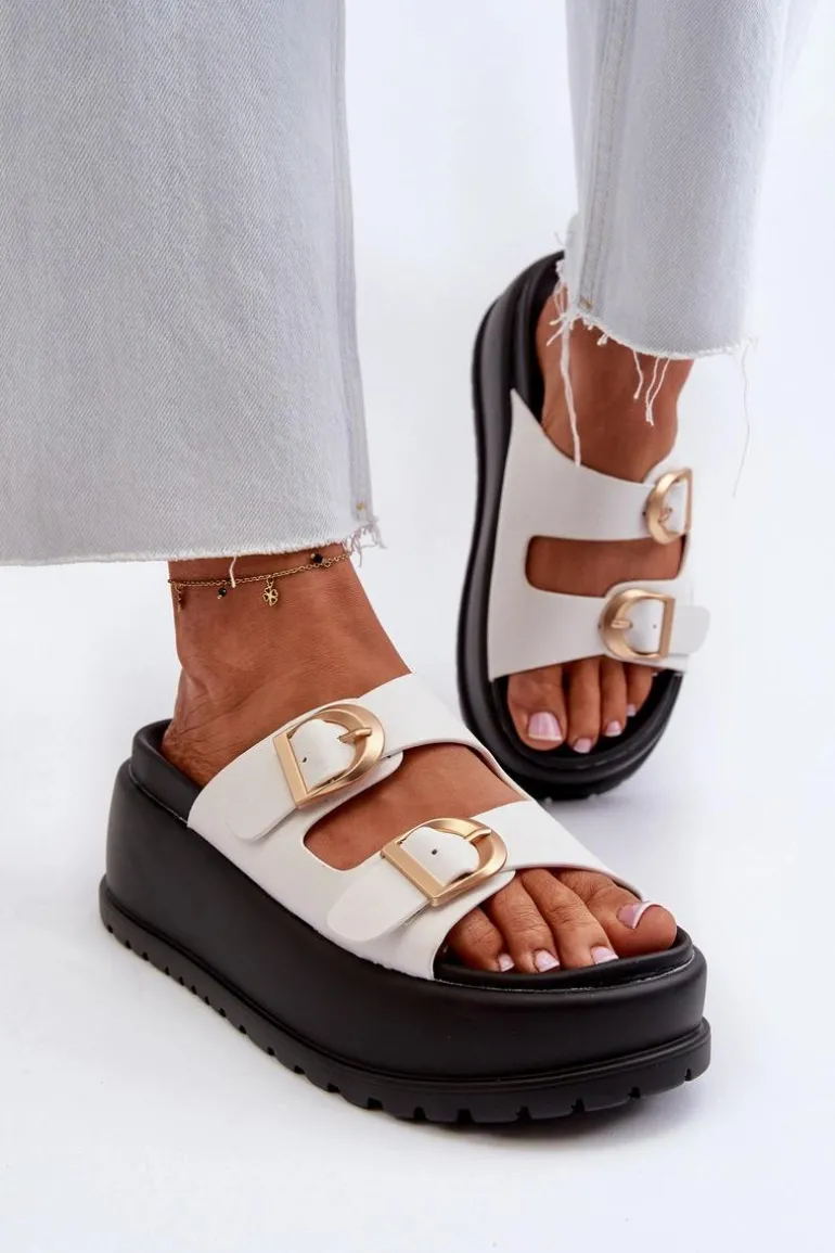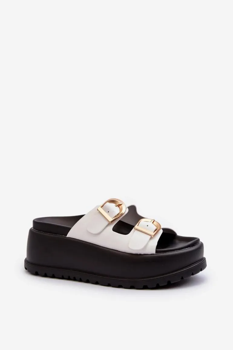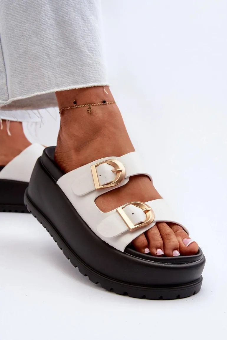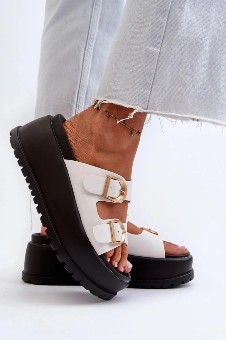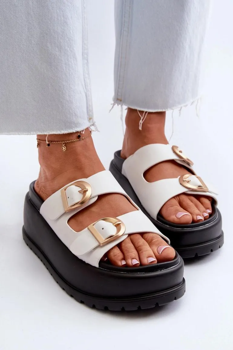 Klapki damskie na masywnej platformie to idealny wybór dla tych, którzy pragną połączyć wygodę z modnym stylem. Wykonane z eko skóry. Regulowane paski z klamrami sprawią, że łatwo dopasujesz je do tęgości stopy. Platforma zapewnia stabilność i wygodę noszenia przez cały dzień. Doskonałe na letnie spacery czy wieczorne wyjścia. Przy wyborze rozmiaru prosimy sugerować się tabelą rozmiarów.