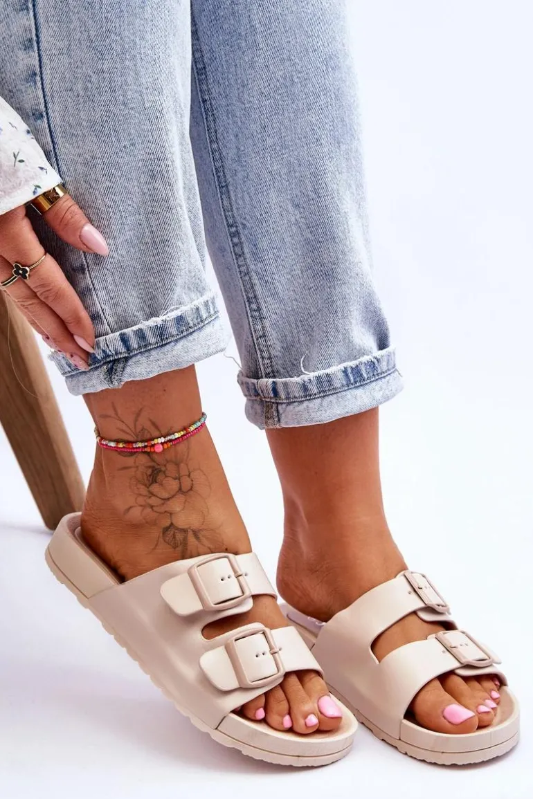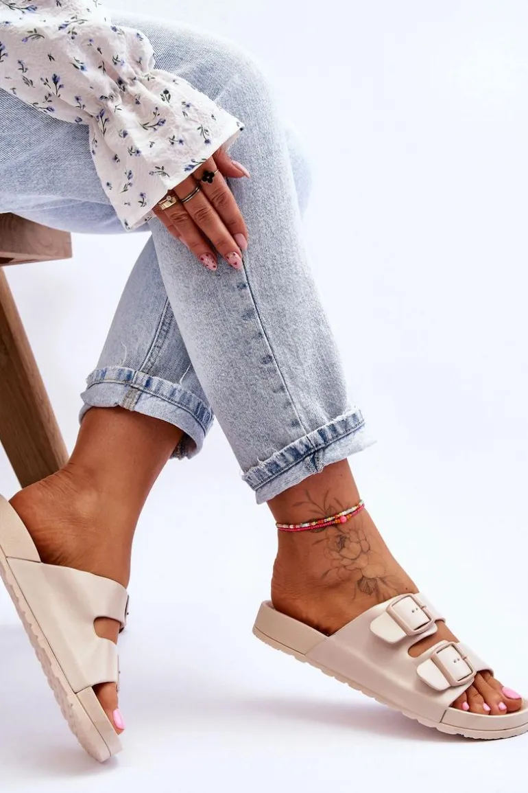Damskie Klapki Na Platformie Beżowe Vertigo