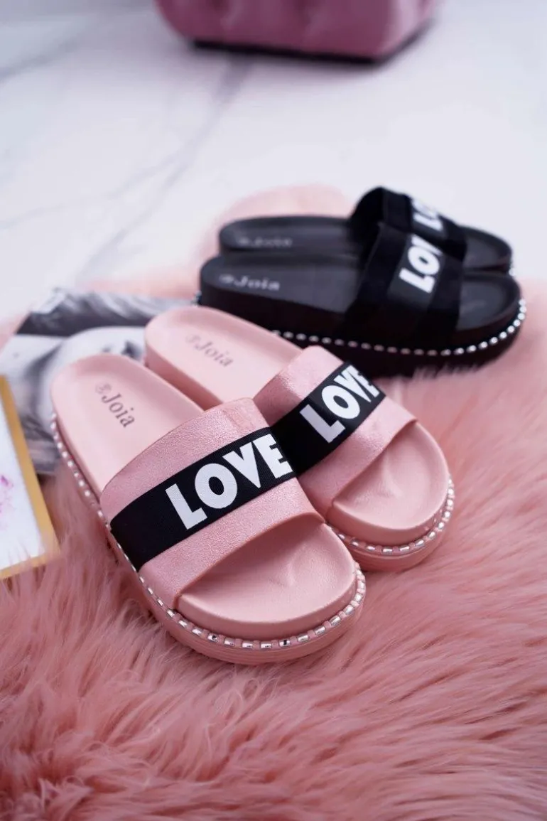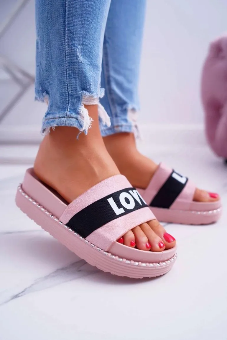 Damskie Klapki Na Platformie Z Dżetami Love Różowe MoreLove