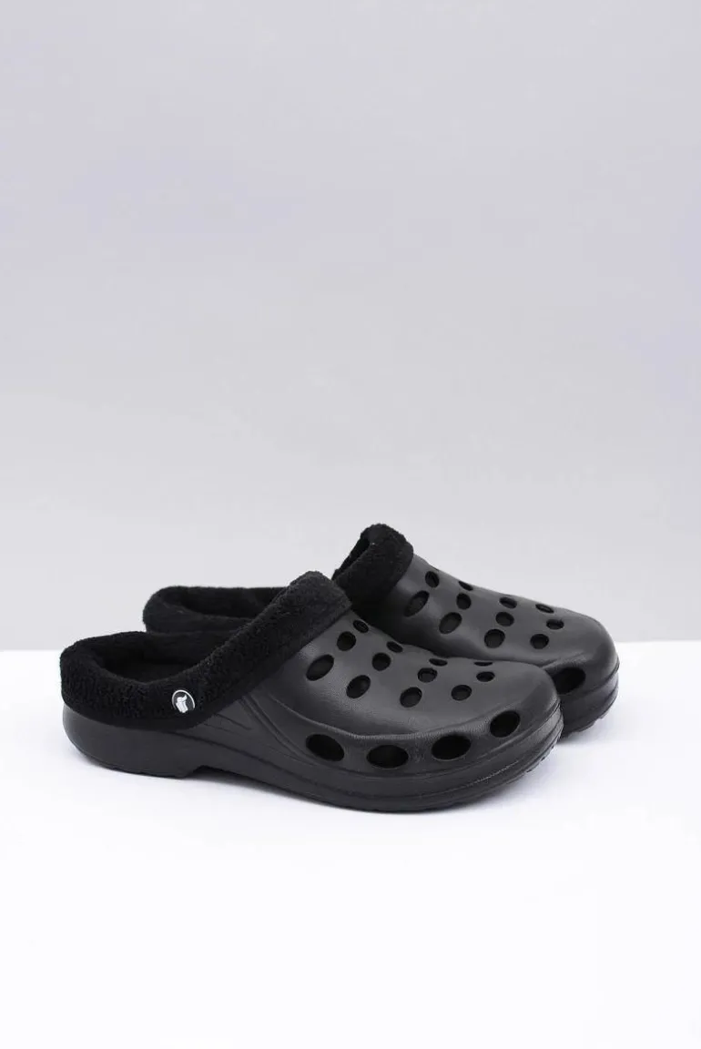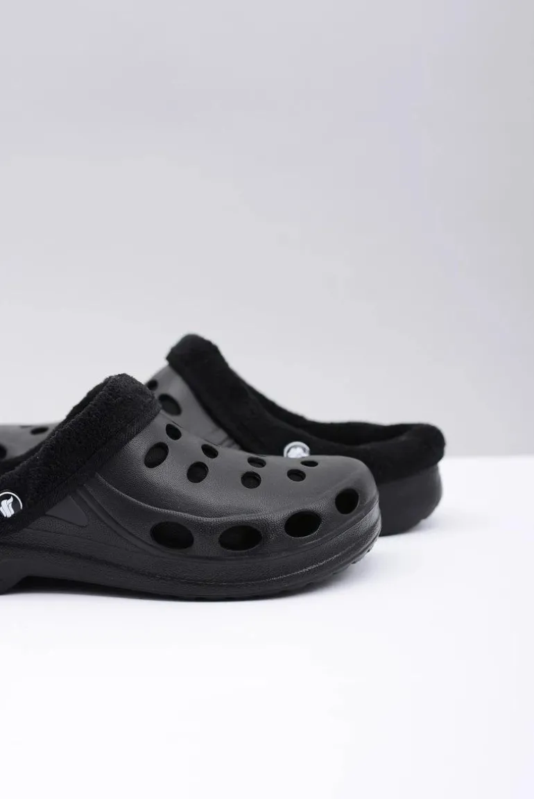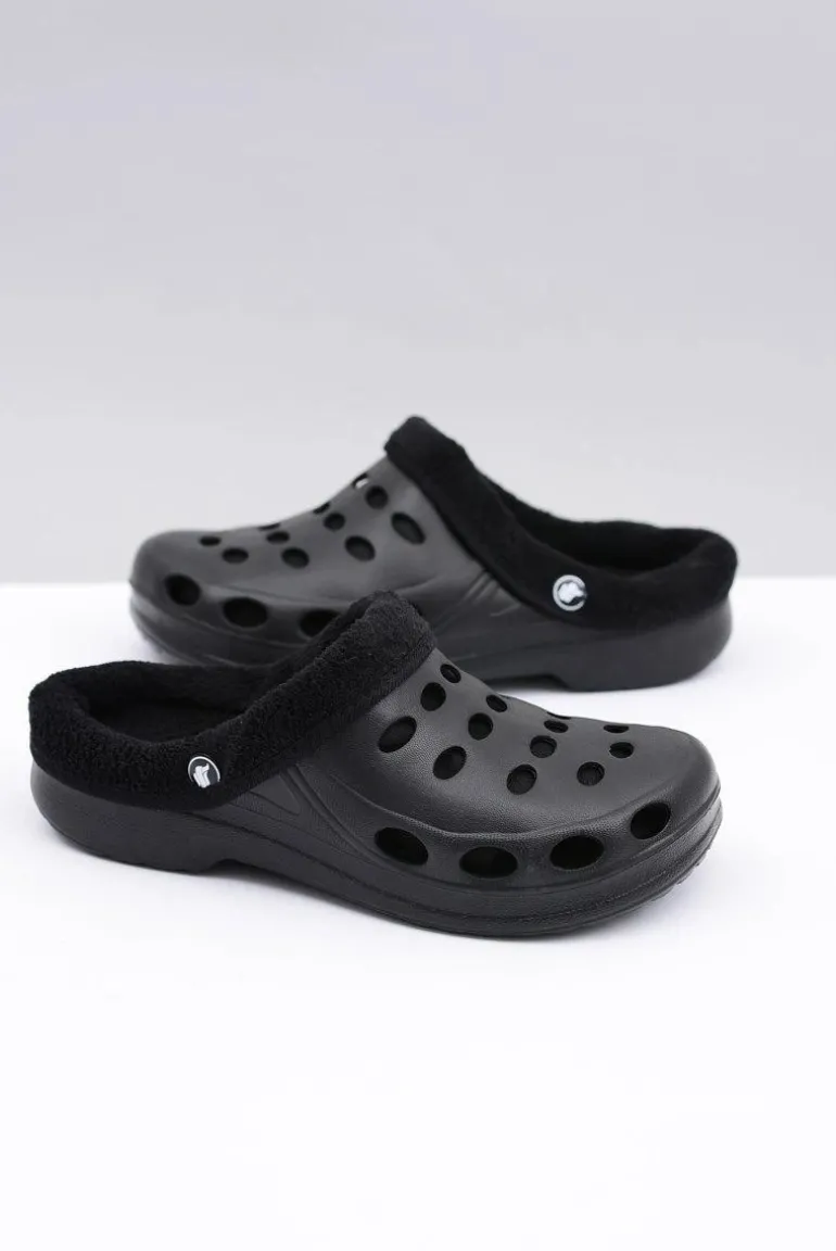 Damskie Klapki Ocieplane Czarne Kroksy EVA