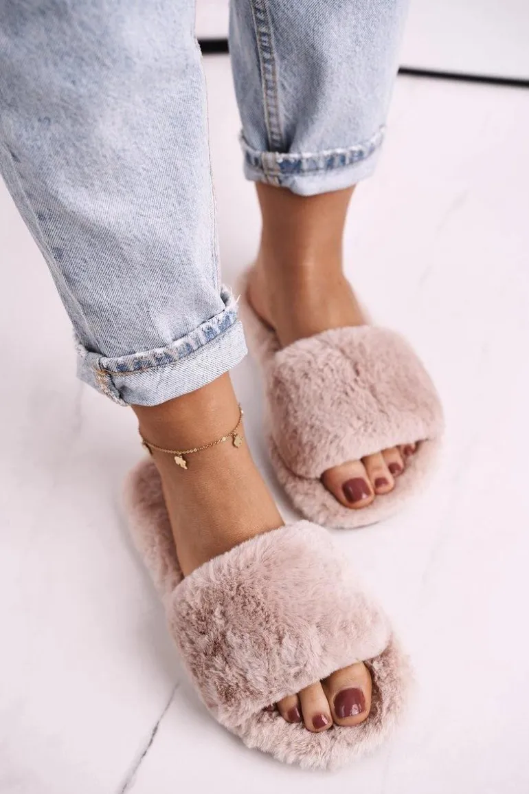Damskie Klapki Papcie Futrzane Jasny Brąz Cold Days