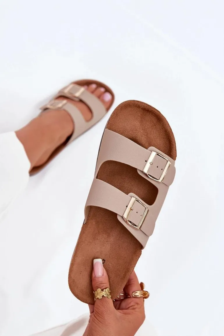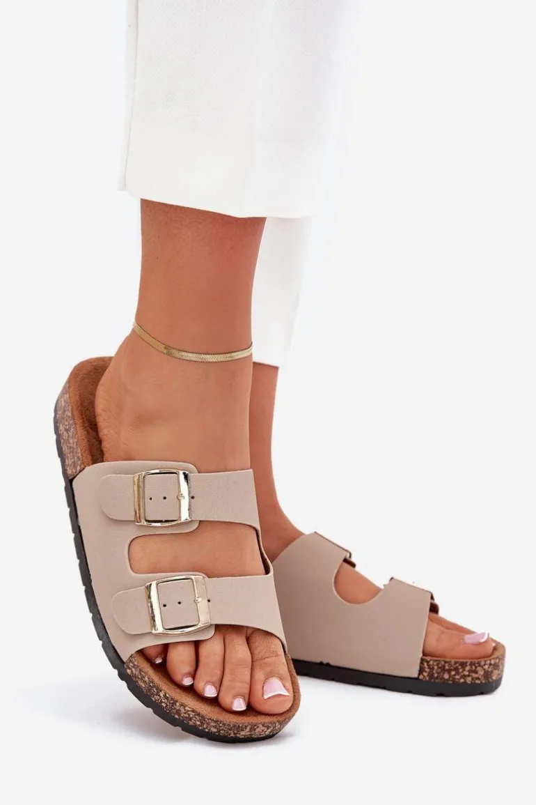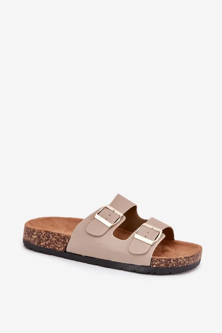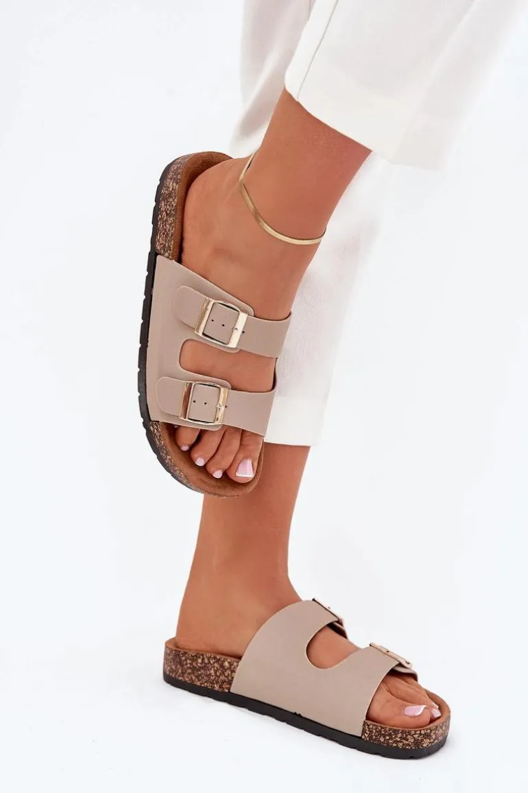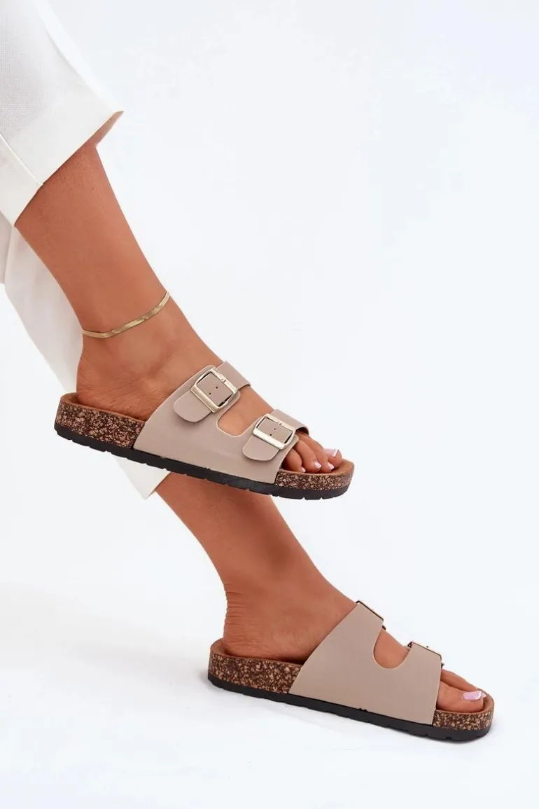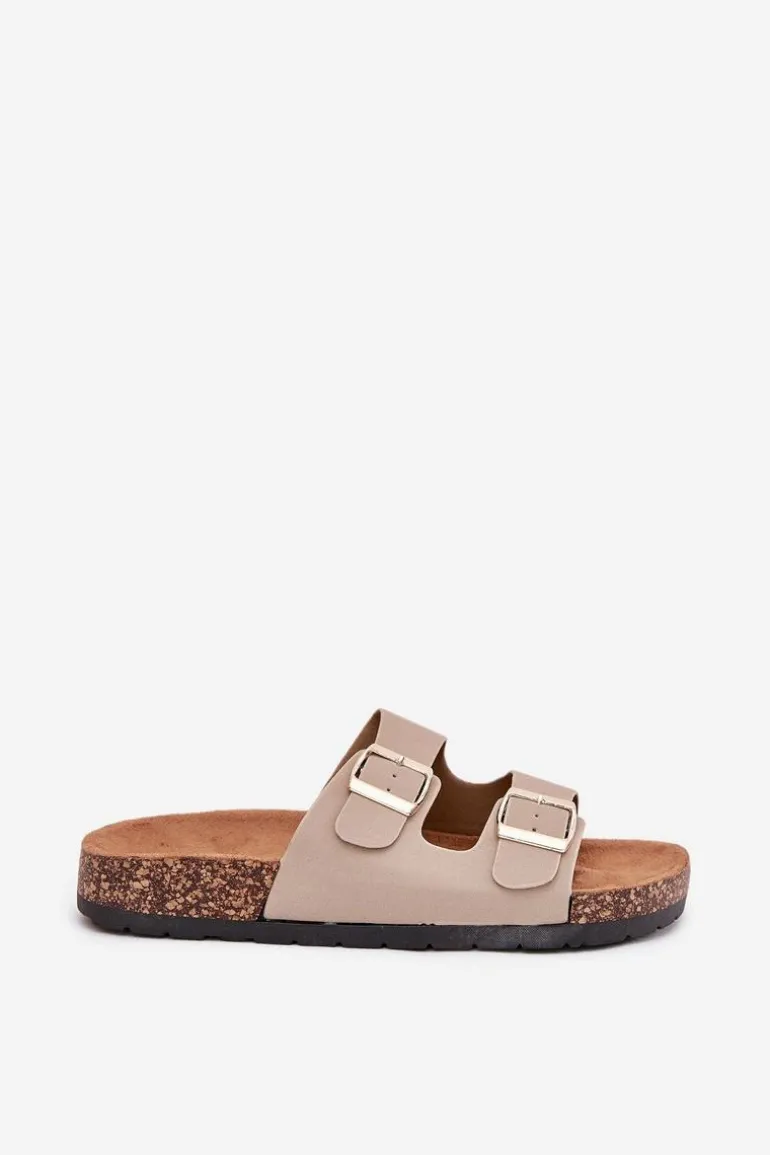 Damskie Klapki Wsuwane Na Korkowej Podeszwie Beżowe Cortina