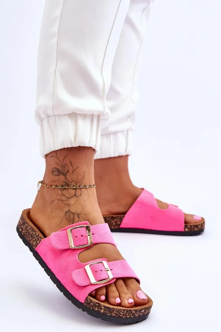 Damskie Klapki Wsuwane Na Korkowej Podeszwie Neonowe Różowe Cortina