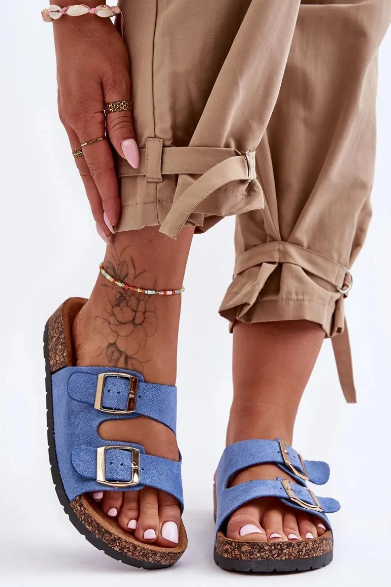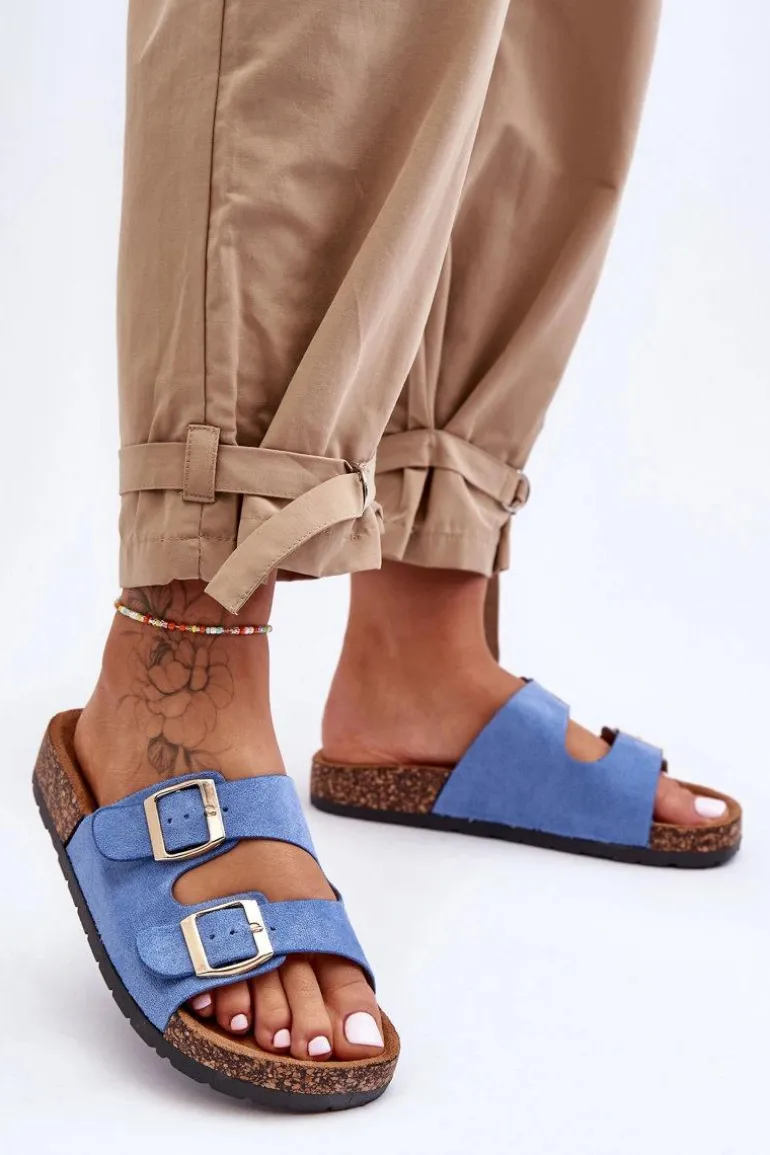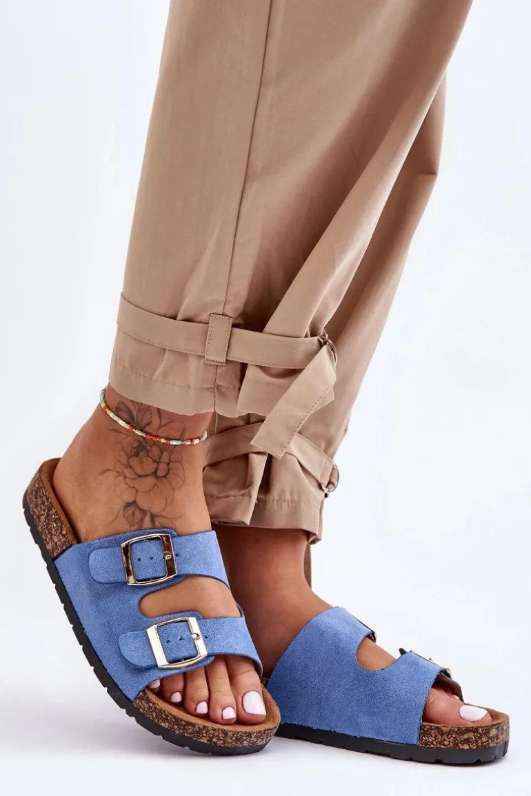 Damskie Klapki Wsuwane Na Korkowej Podeszwie Niebieskie Cortina