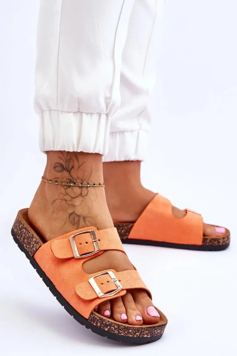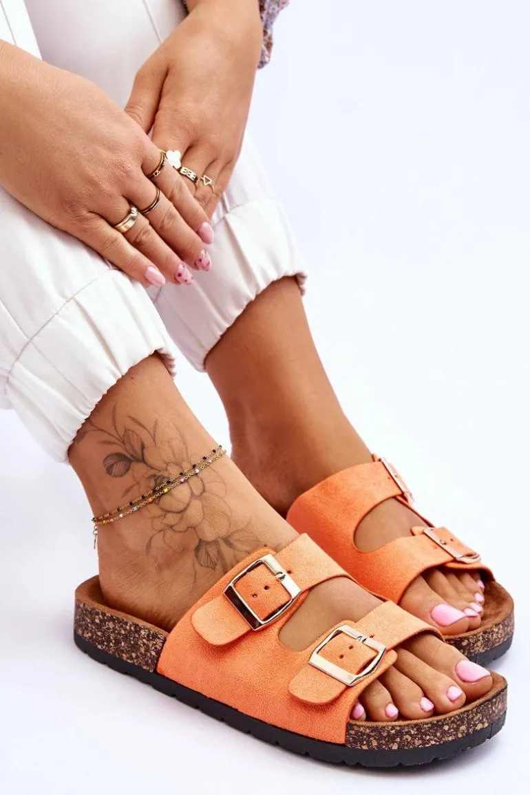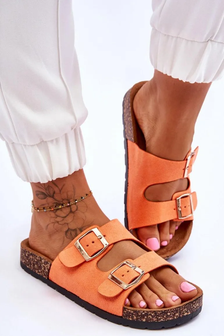 Damskie Klapki Wsuwane Na Korkowej Podeszwie Pomarańczowe Cortina