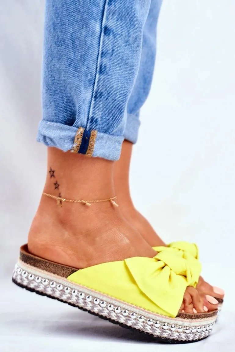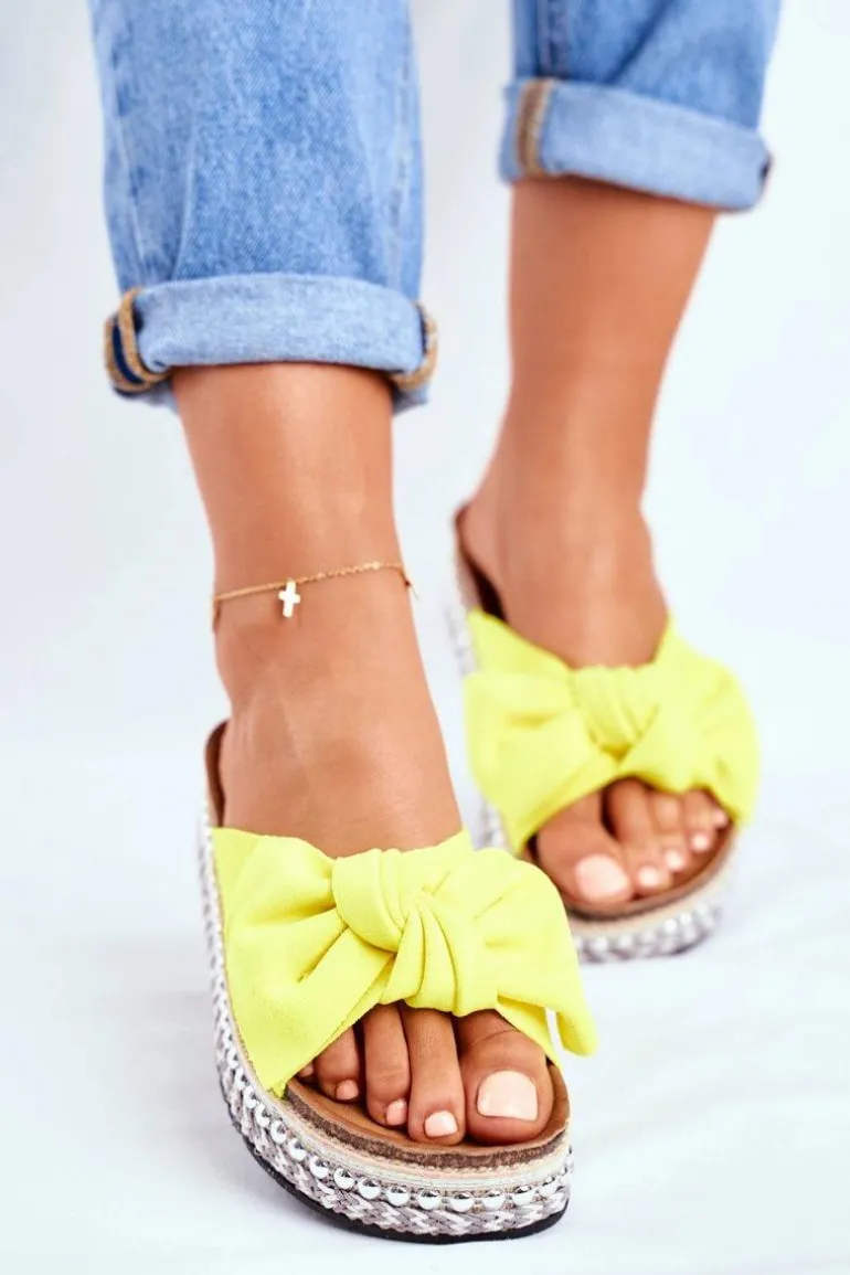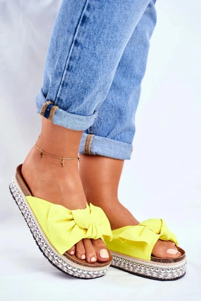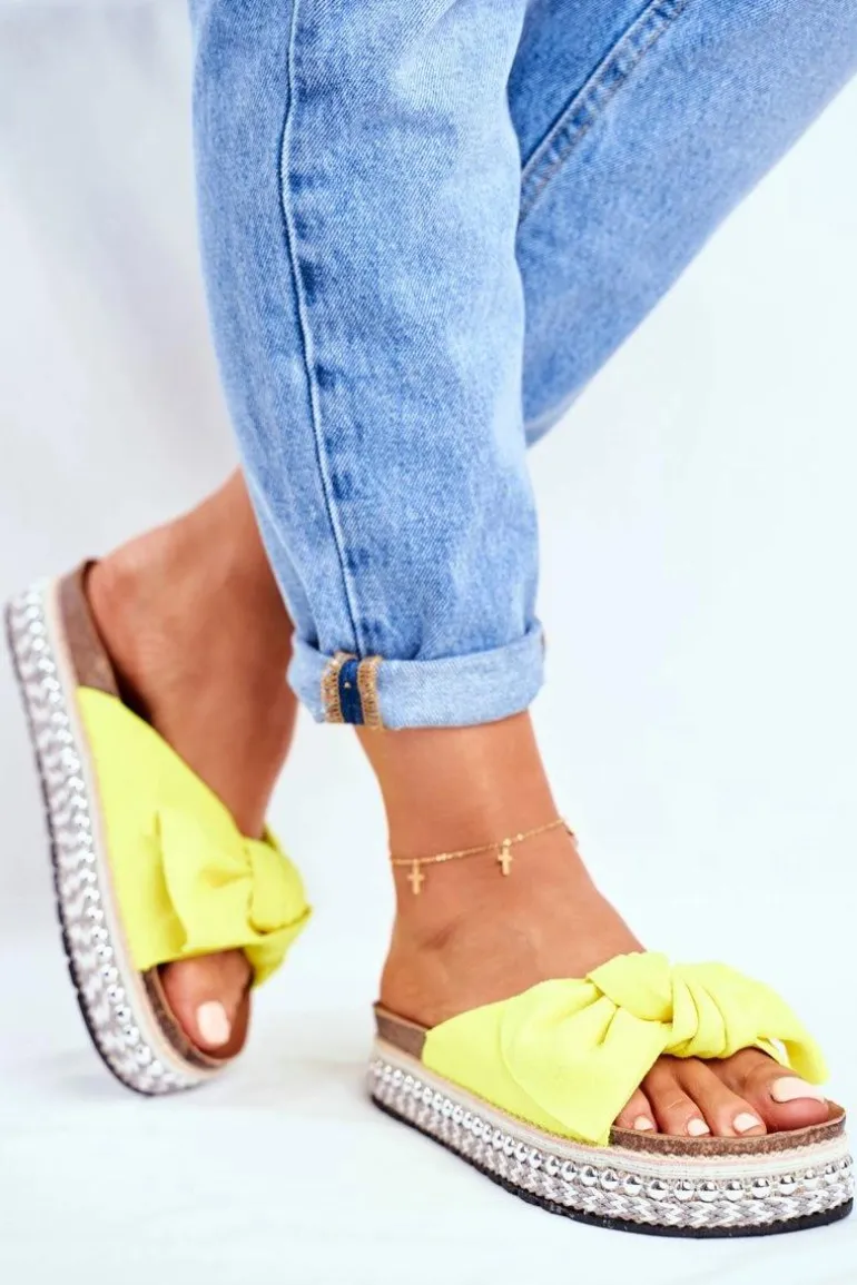 Damskie Klapki Wysokie Żółte Neonowe Mortigo