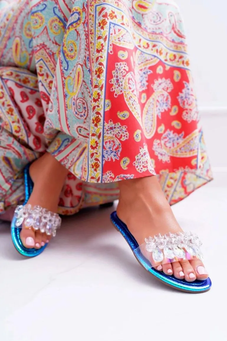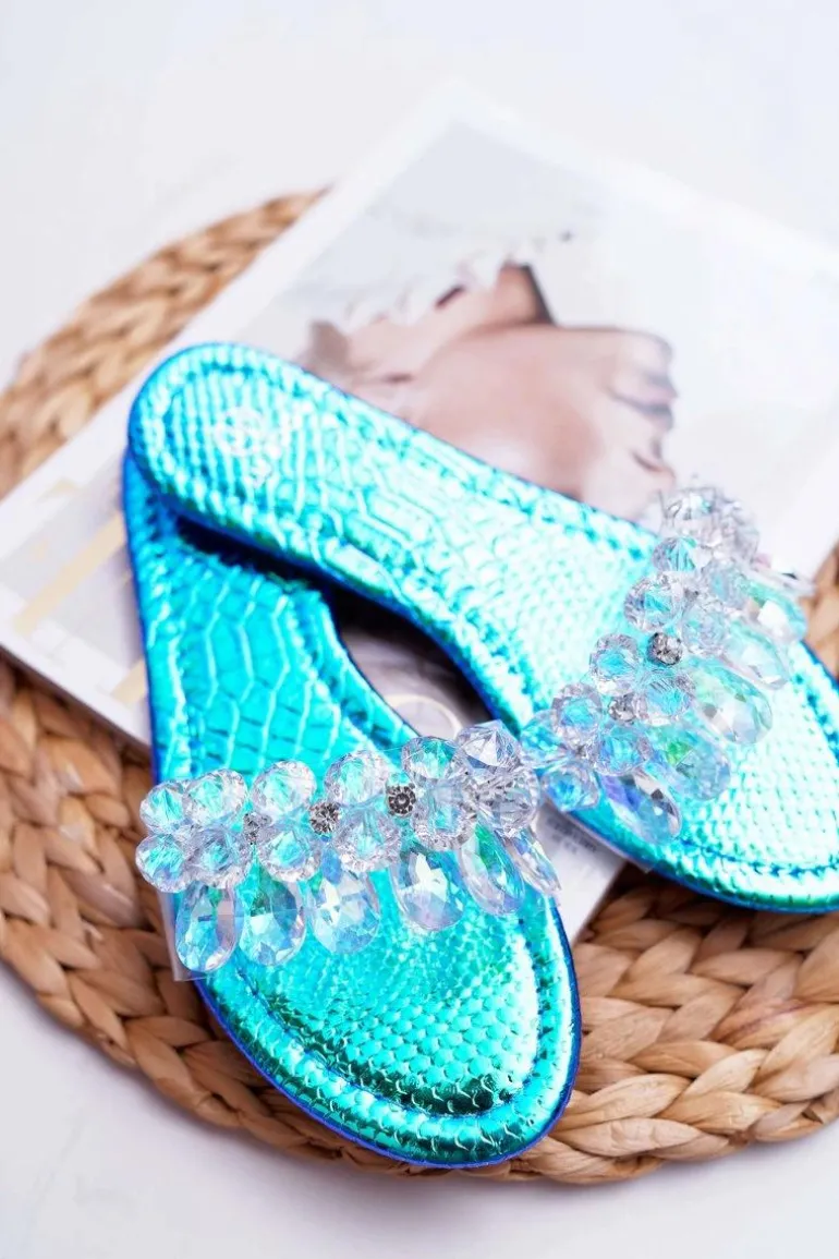 Damskie Klapki Z Cyrkoniami Lu Boo Benzynowe Niebieskie Mediana