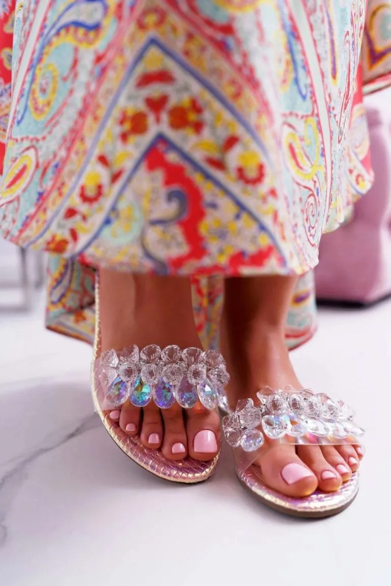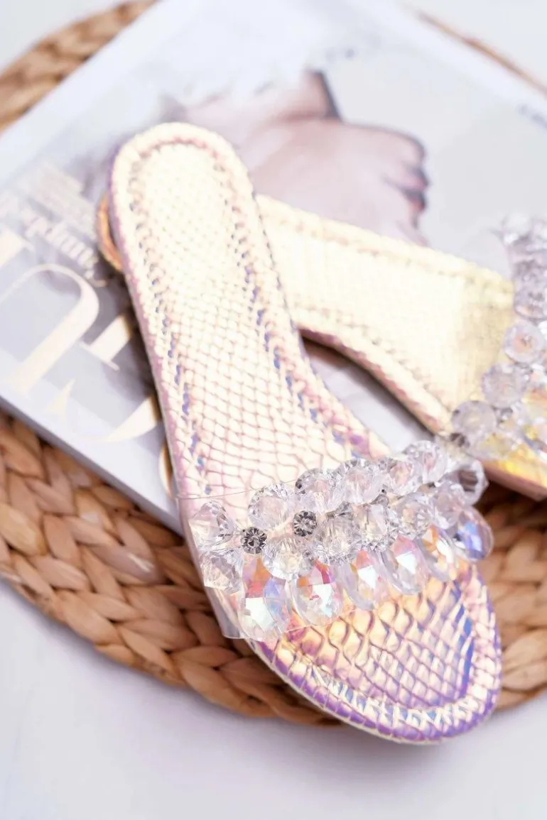 Damskie Klapki Z Cyrkoniami Lu Boo Benzynowe Różowe Mediana