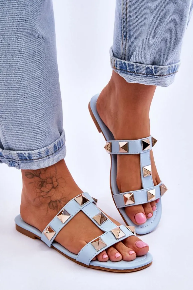 Damskie Klapki Z Dużymi Ćwiekami Niebieskie Mercure