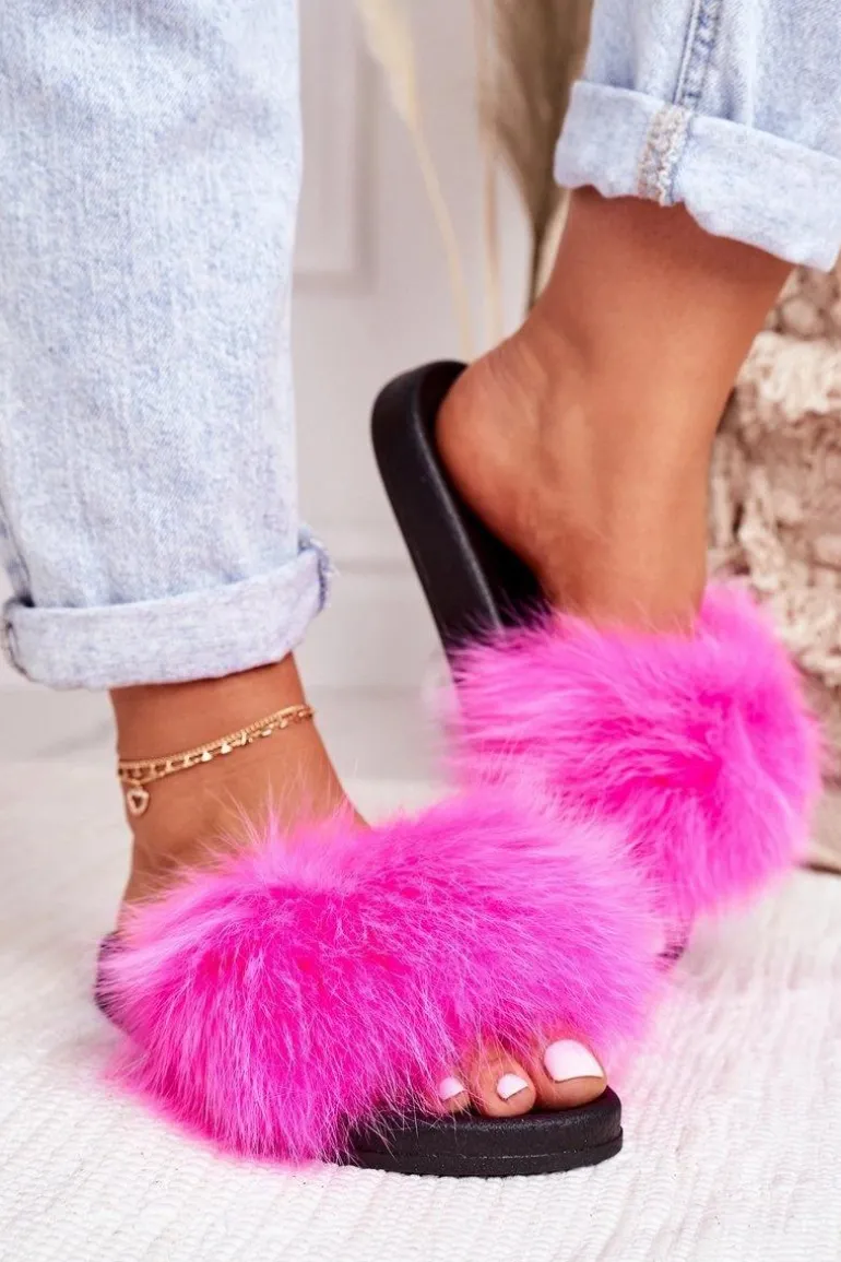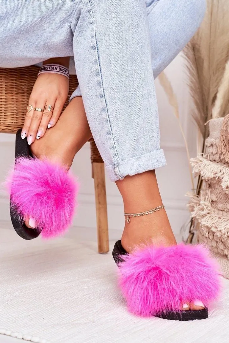 Damskie Klapki z Futerkiem Fuksja Belmondo