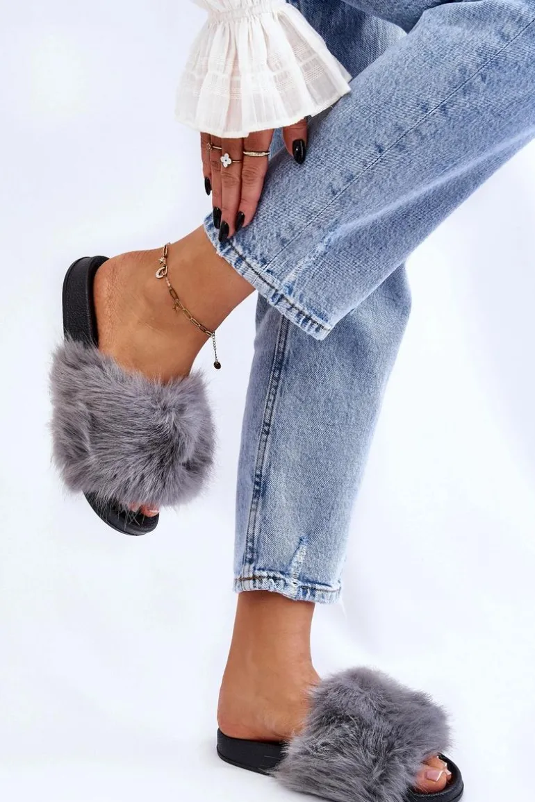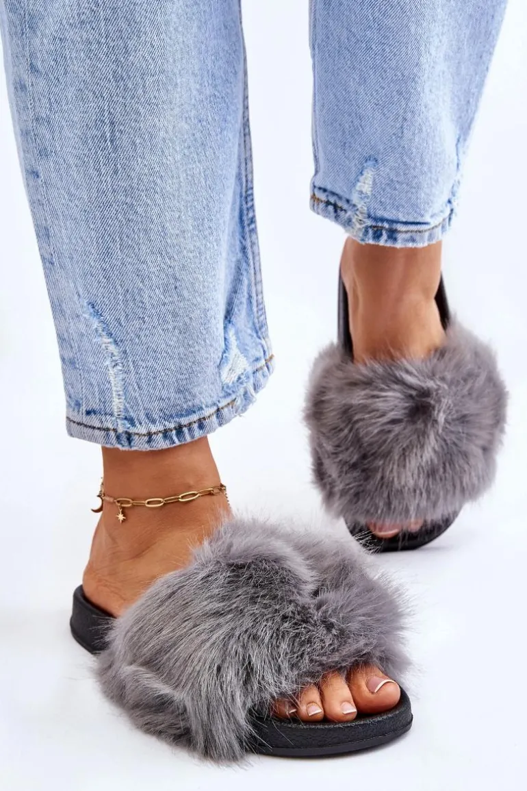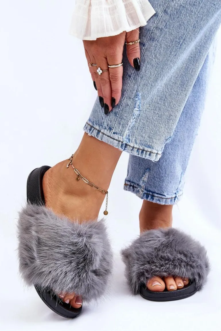 Damskie Klapki Z Futerkiem Szare Kennet