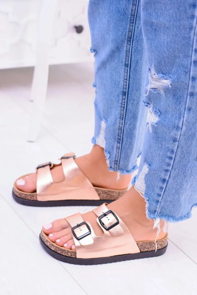 Damskie Klapki Z Klamrami Na Korku Champagne Ferone