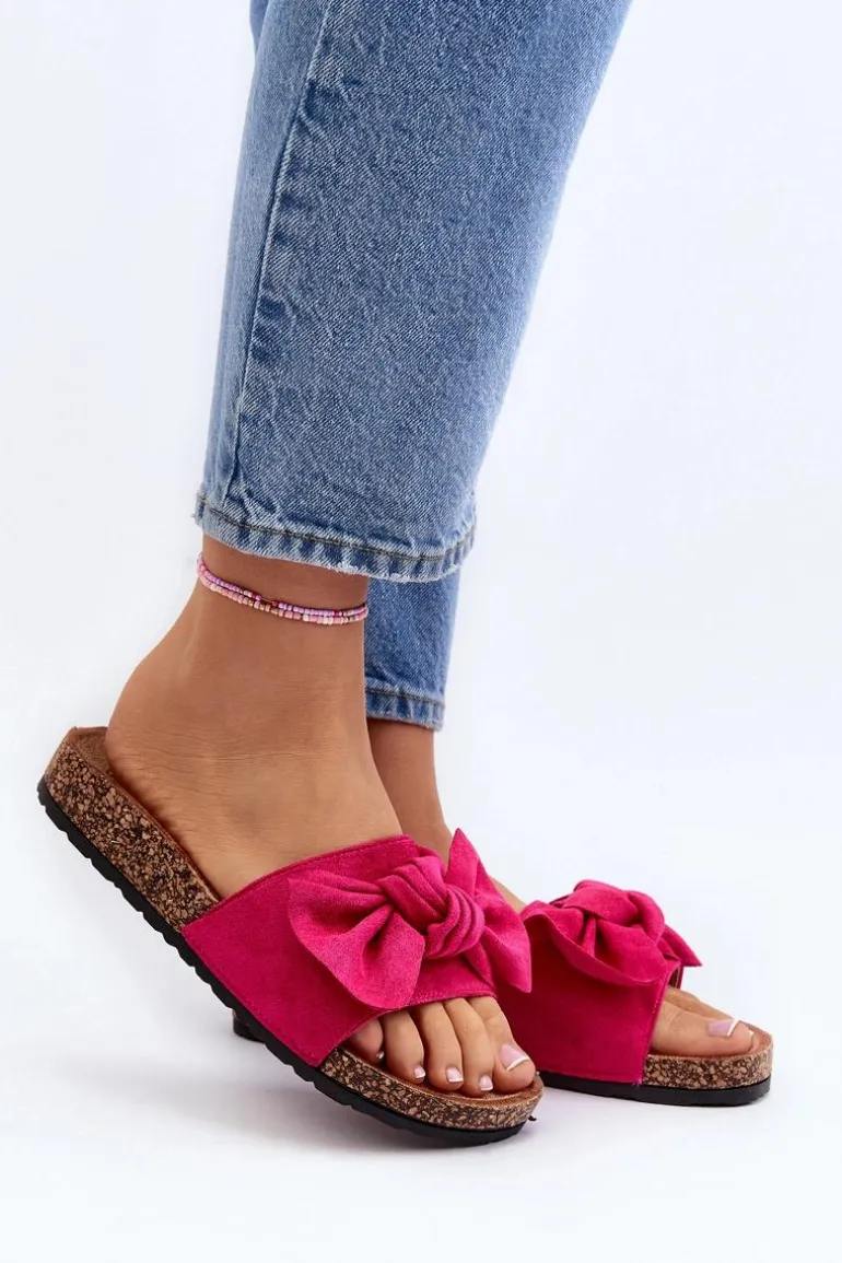 Piękne klapki na korkowej podeszwie. Buty posiadają profilowaną wkładkę, która zagwarantuje maksimum komfortu. Cholewka wykonana jest z miłego w dotyku eko zamszu. Z przodu ozdobna kokarda. Idealne na co dzień! Model ten dostępny jest w różnych kolorach. Koniecznie powinnaś je mieć! Przy wyborze rozmiaru prosimy sugerować się tabelą rozmiarów.