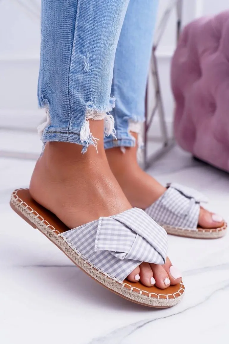Damskie Klapki Z Kokardkami Pin-up Girl Szare