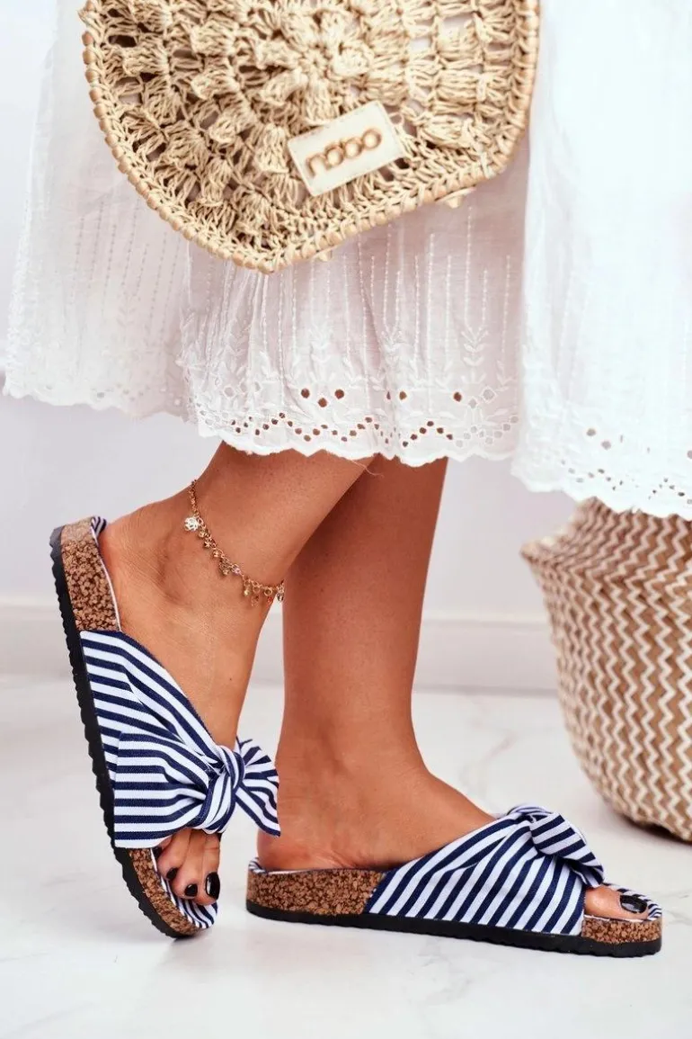 Damskie Klapki Z Kokardkami Pin-up Granatowe Verrone