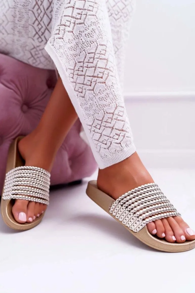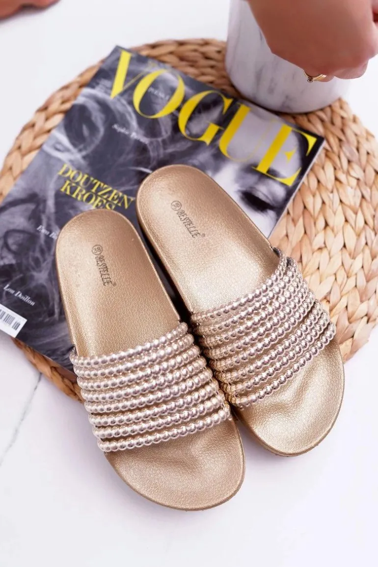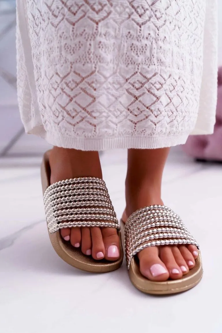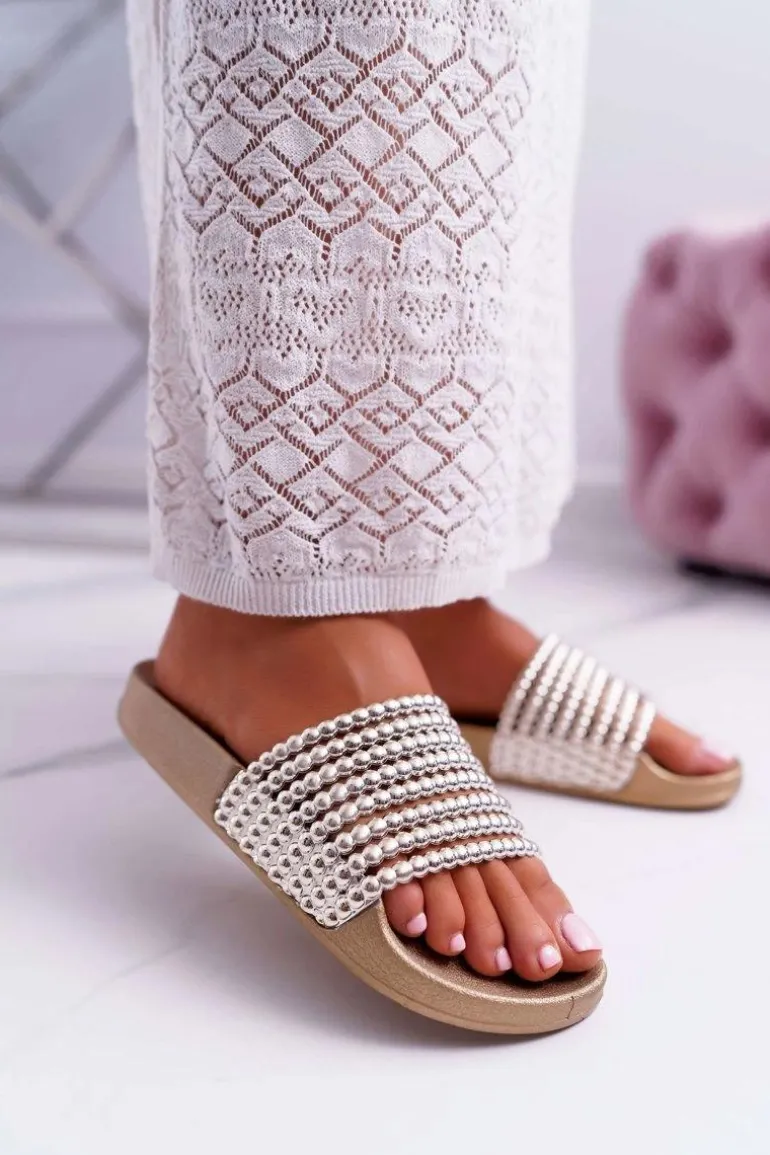 Damskie Klapki z Koralikami Złote Elavi