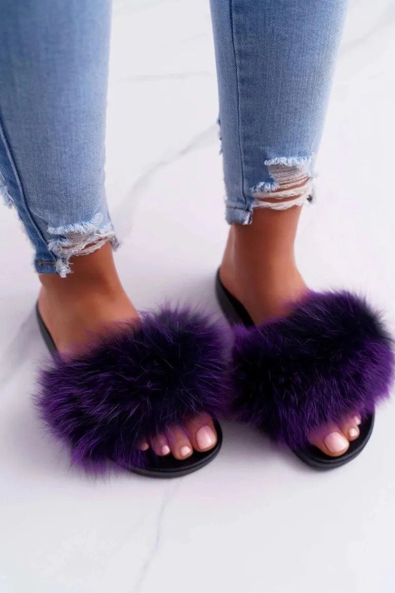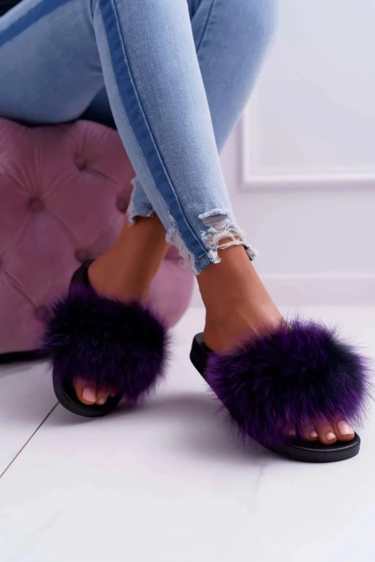Klapki damskie z naturalnym futerkiem. Podeszwa wykonana jest z gumowego, lekkiego tworzywa. Delikatnie profilowana wkładka zadba o Twój komfort.