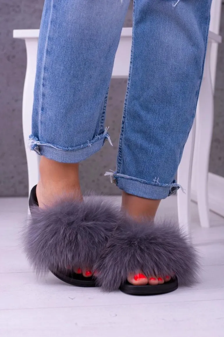 Klapki damskie z naturalnym futerkiem. Podeszwa wykonana jest z gumowego, lekkiego tworzywa. Delikatnie profilowana wkładka zadba o Twój komfort.
