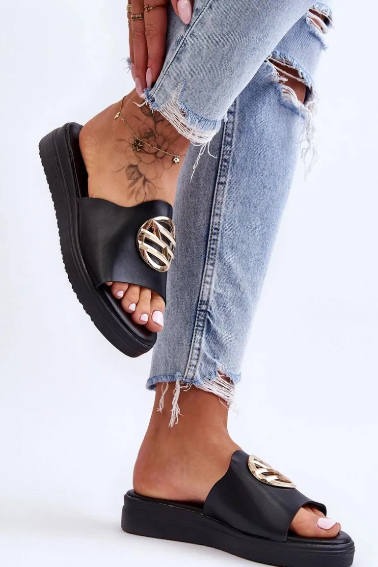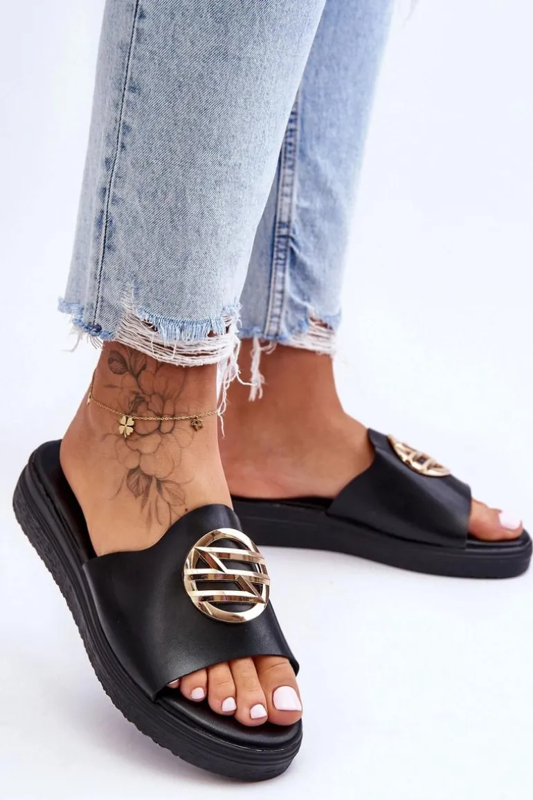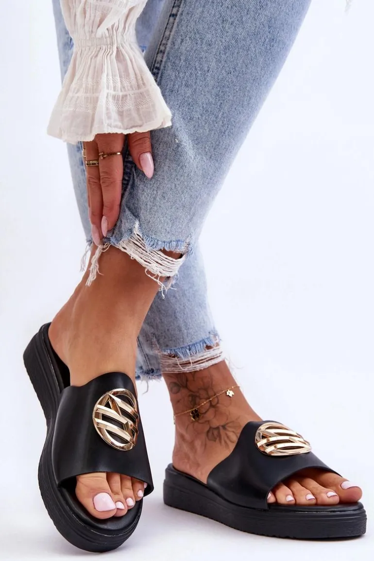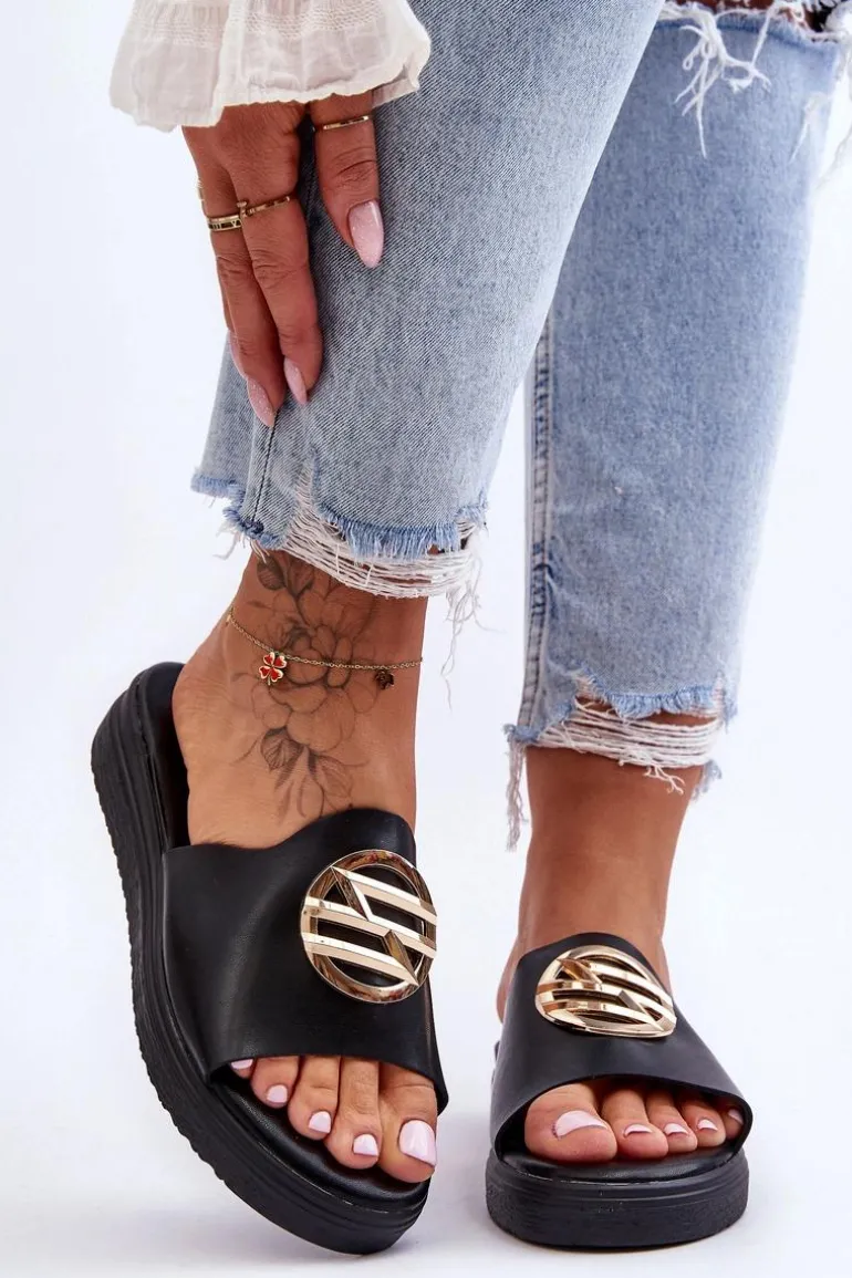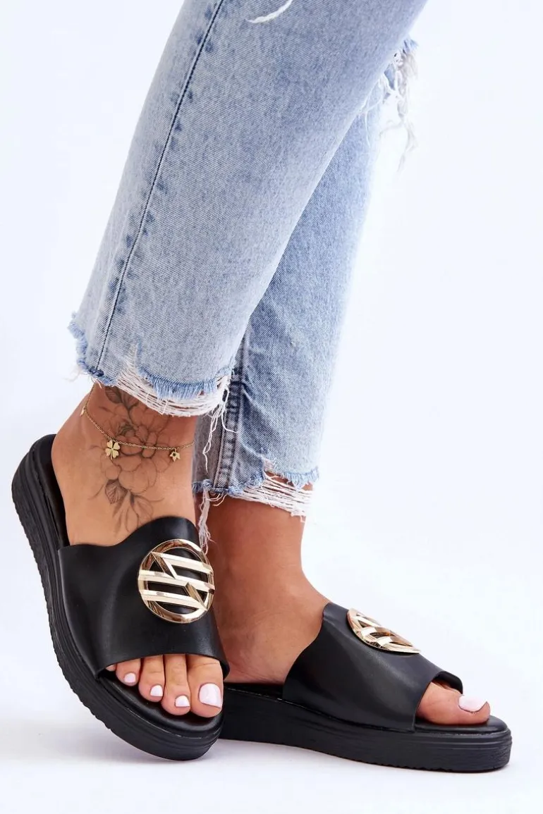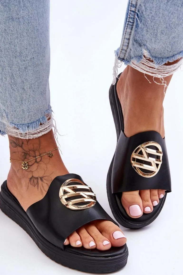 Damskie Klapki Z Ozdobą Czarne Secrets