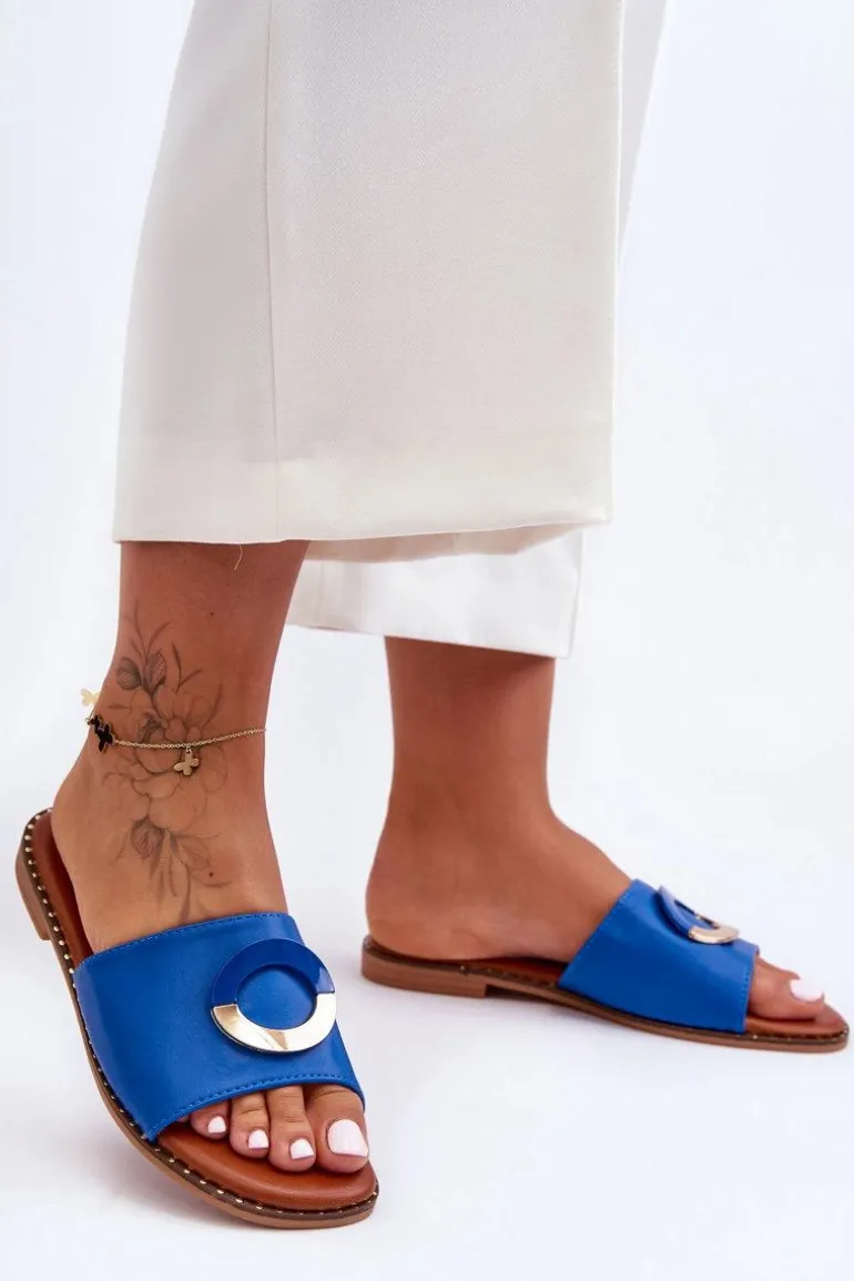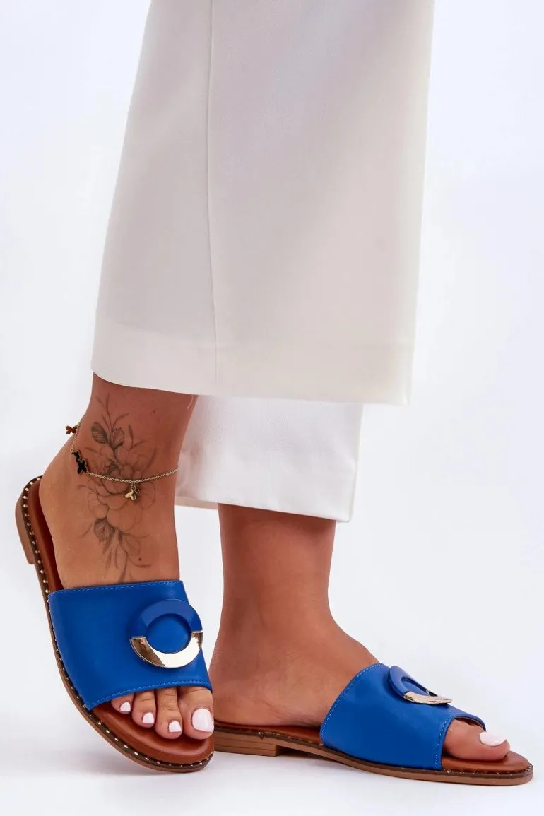 Damskie Klapki Z Ozdobą Niebieskie Sherry