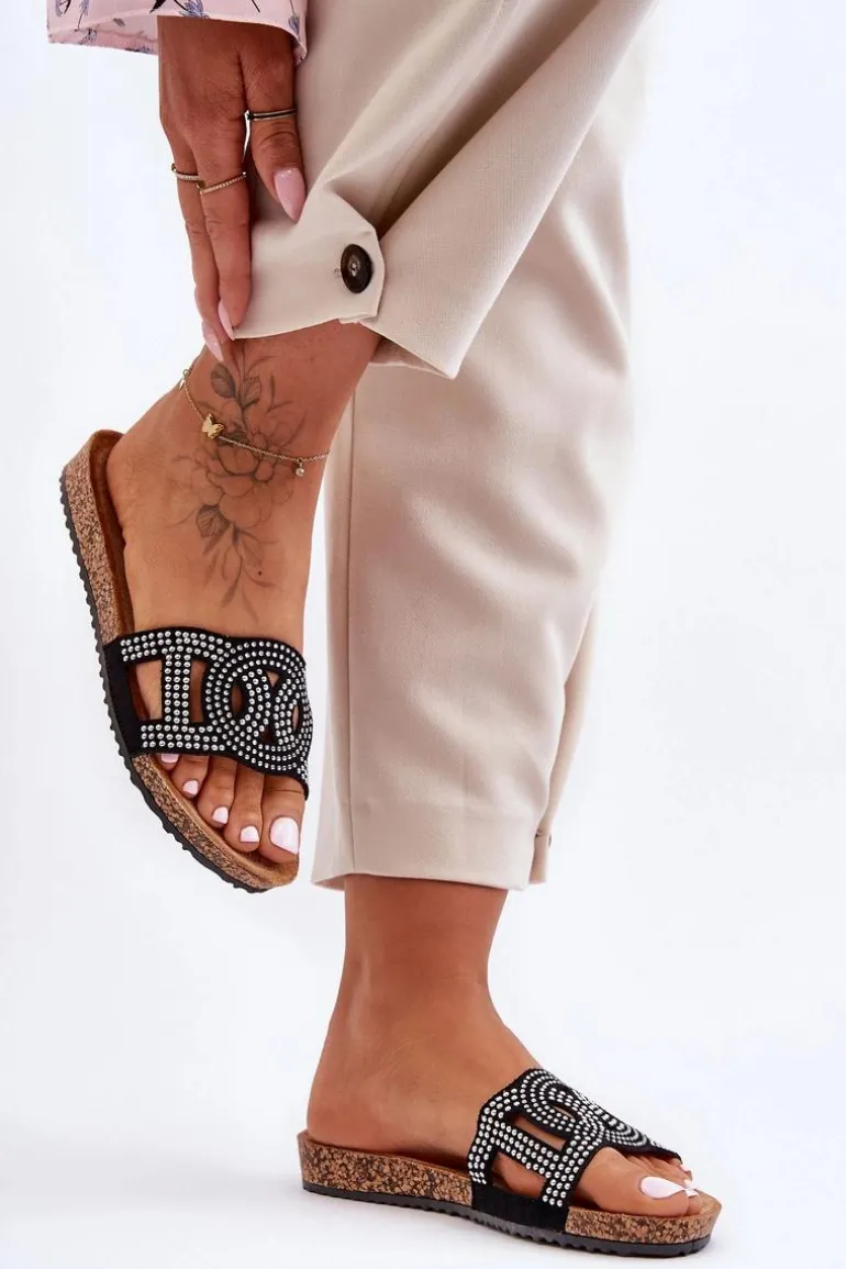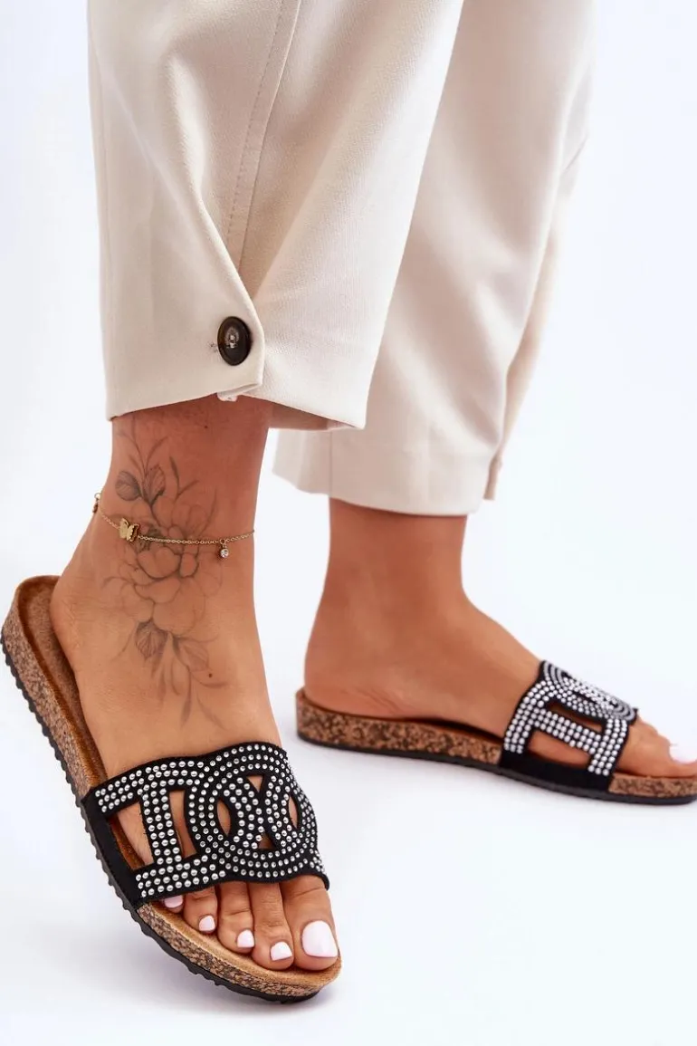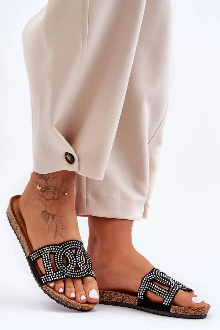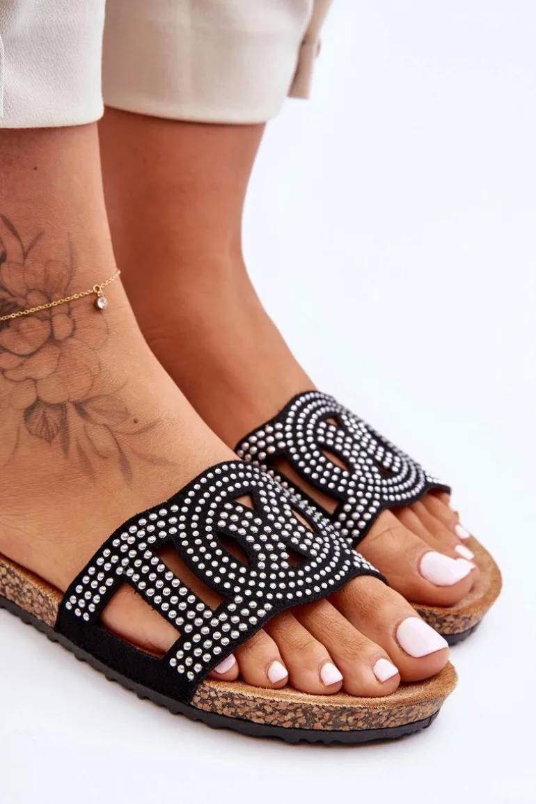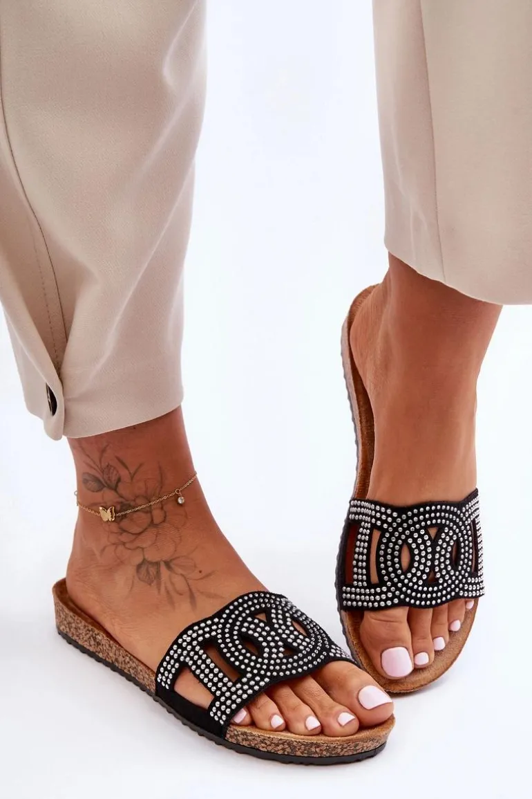 Damskie Klapki Zdobione Ćwiekami Czarne Evelins