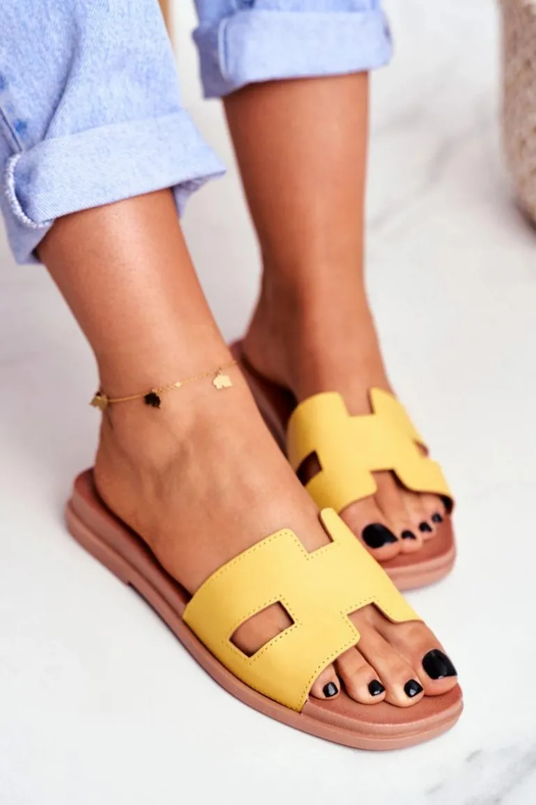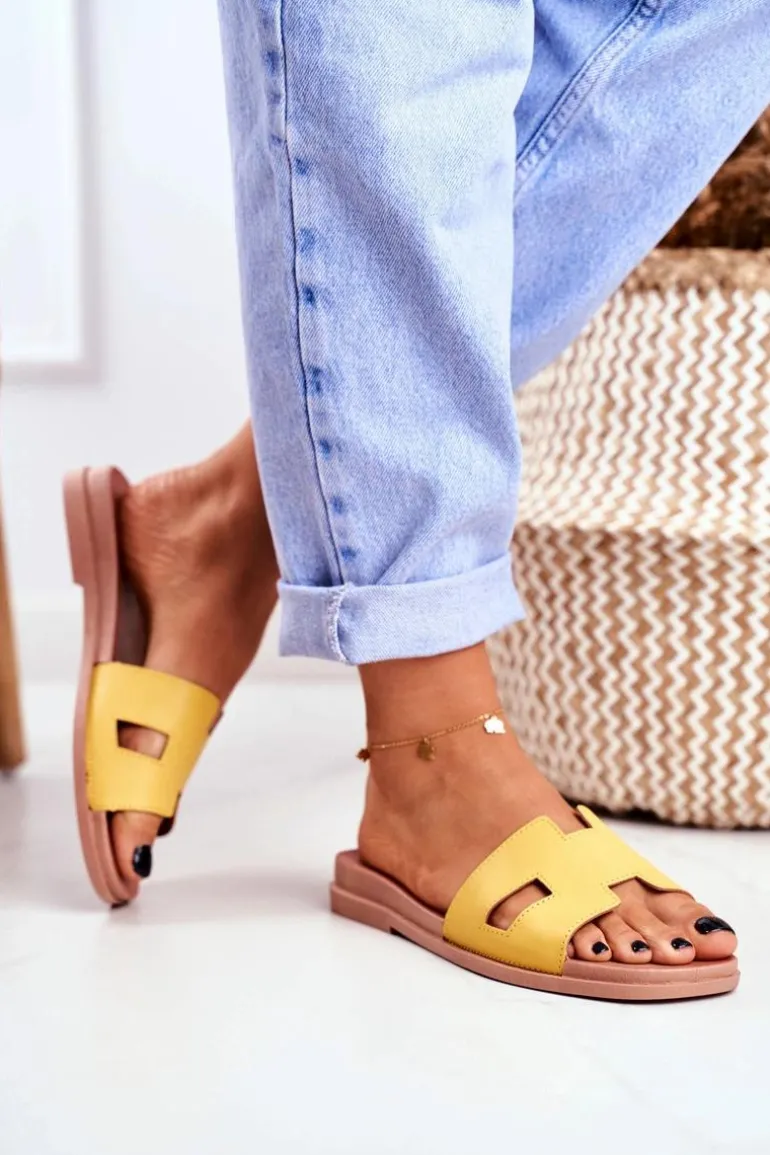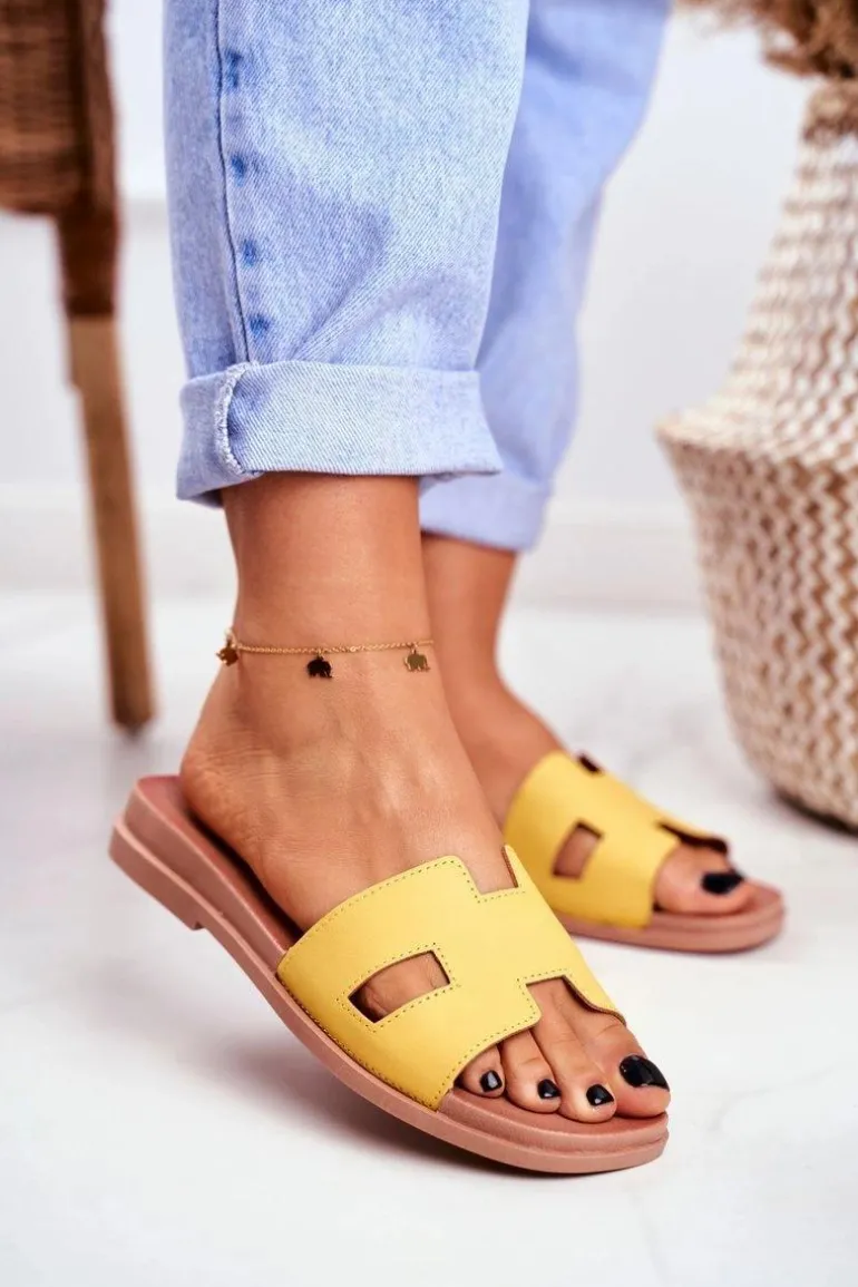 Damskie Klapki Żółte Geometryczne Klasyczne Theodora