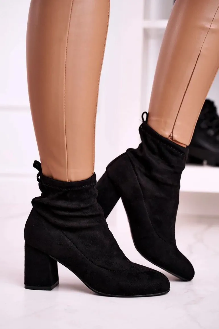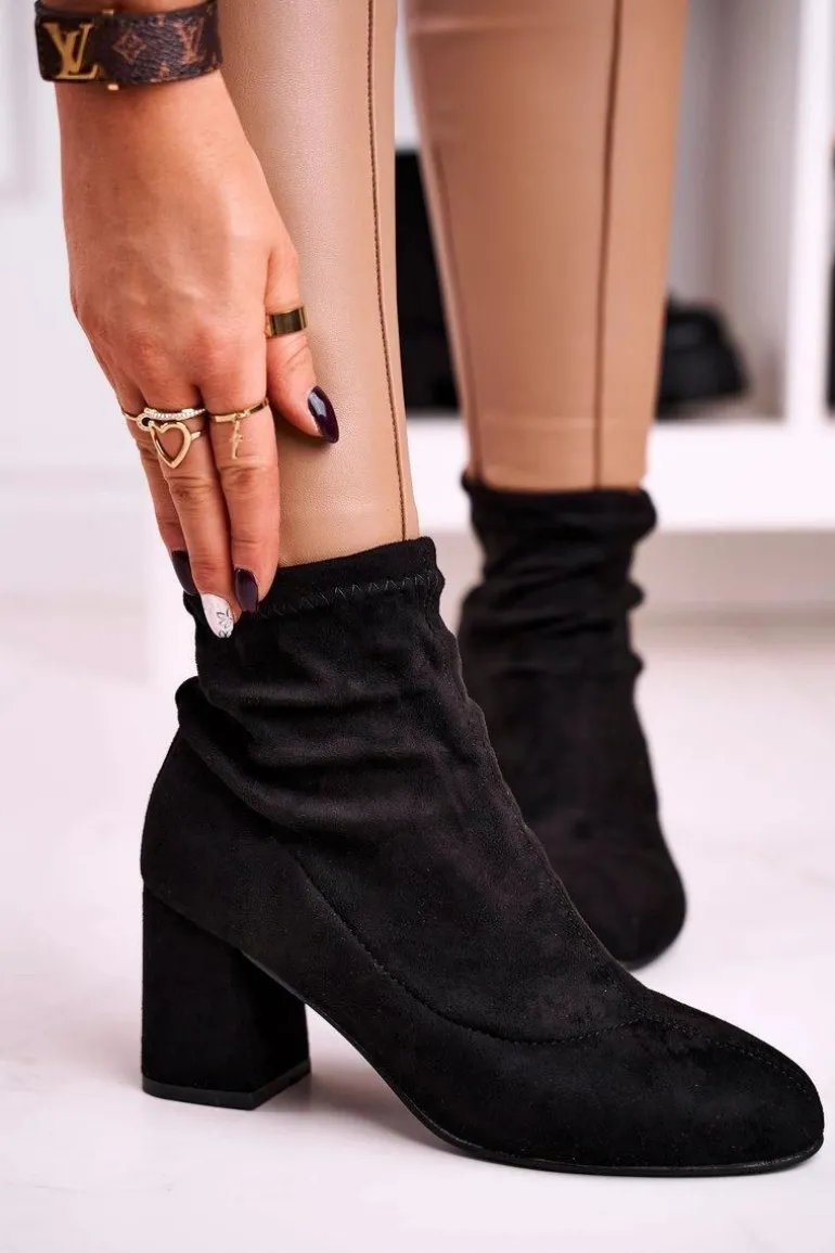 Damskie Klasyczne Botki Na Słupku Zamszowe Czarne Ring