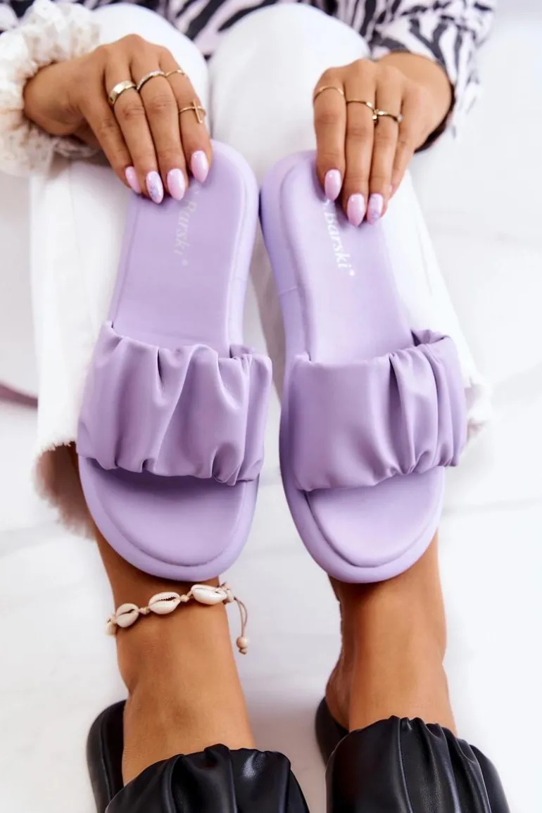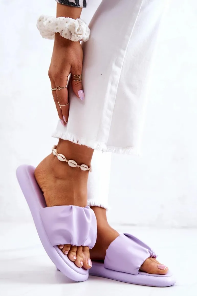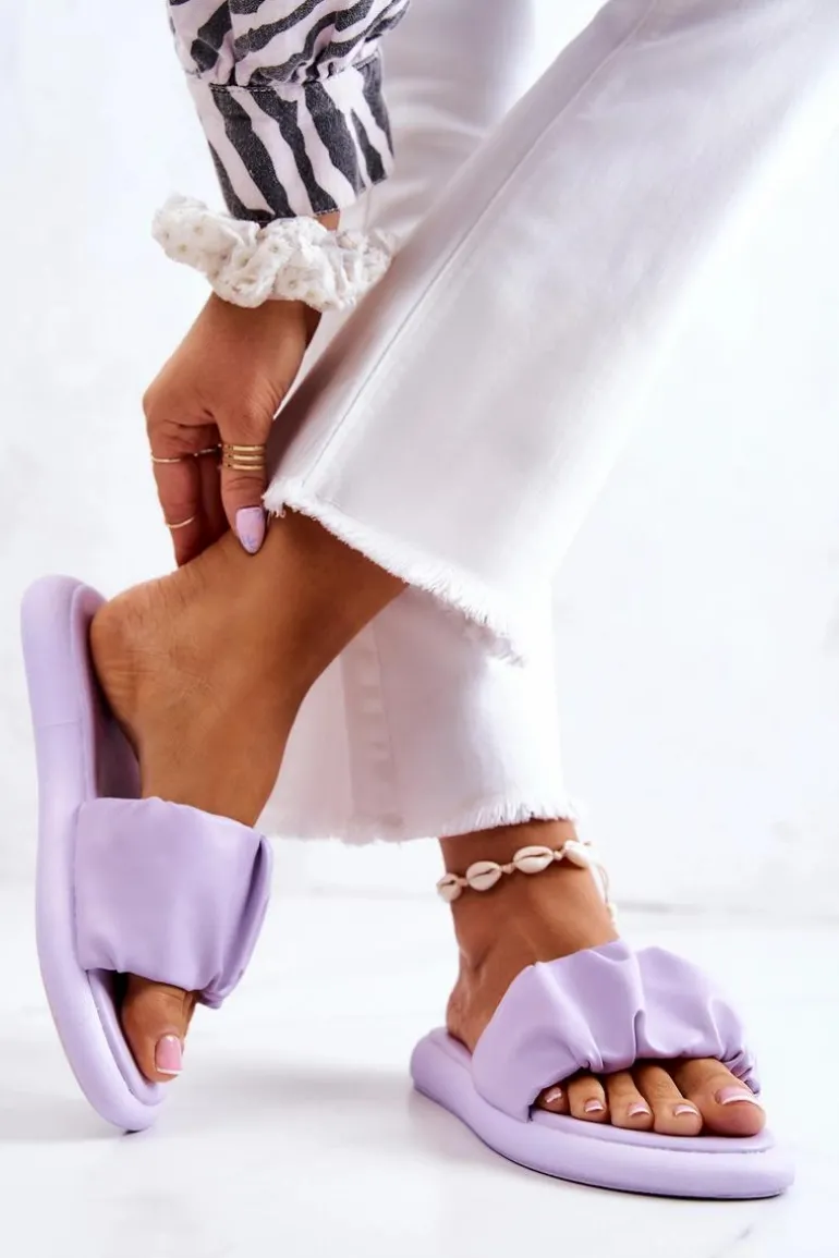 Eleganckie klapki damskie posiadają miękką wkładkę z eko skóry. Eleganckie marszczenia z eko skóry sprawiają, że buty wyglądają naprawdę cudnie. Delikatna platforma oraz podeszwa wykonane z tworzywa sztucznego. Klapki te dopełnią wiele letnich stylizacji! Świetnie będą pasować do stylizacji boho. Zachwycaj wyglądem i kup je już dziś! Koniecznie sprawdź całą naszą kolekcję klapek damskich. Przy wyborze rozmiaru prosimy sugerować się tabelą rozmiarów.