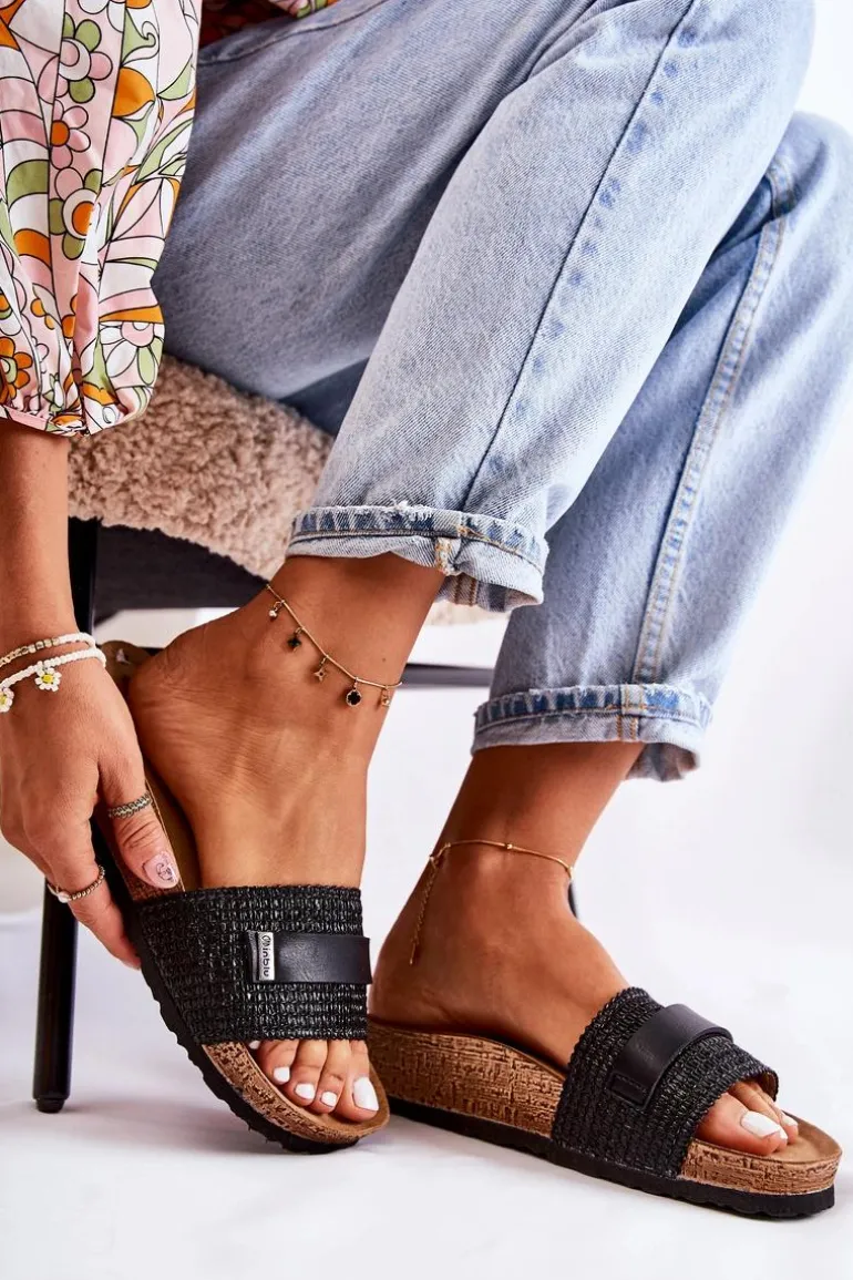 Modne klapki od marki INBLU. Wykonane z wierzchu z połączenia wysokiej jakości eko skóry oraz tworzywa sztucznego. Model wsuwany. Wkładka jest profilowana, dostosowana do anatomicznego kształtu stopy, a także wykonana z naturalnego zamszu. Podeszwa wraz z platformą wykonana jest z połączenia pianki oraz tworzywa sztucznego. Dzięki zastosowaniu odpowiedniej technologii i materiałów, klapki zapewniają wysoki komfort użytkowania i wygodę. Przy wyborze rozmiaru prosimy sugerować się tabelą rozmiarów.