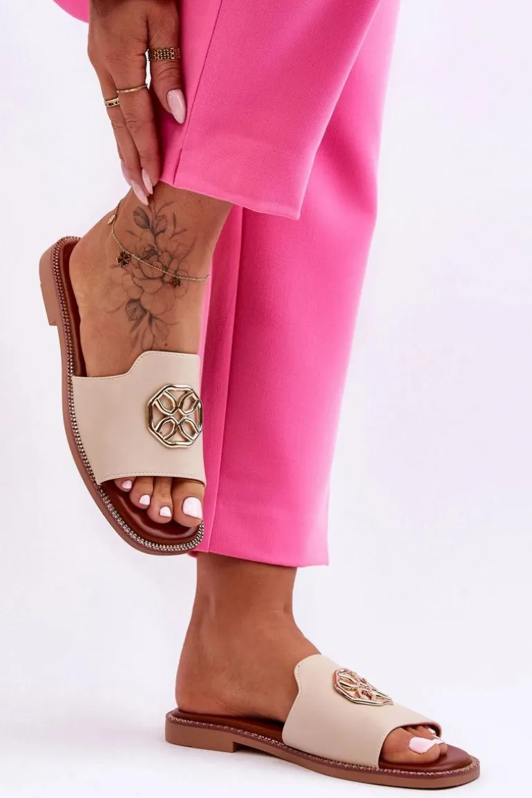 Klasyczne, damskie klapki zostały wykonane z eko skóry. Model ten posiada ozdobę wykonaną z tworzywa sztucznego. Klapki osadzono na delikatnej platformie oraz płaskim obcasie. Wkładka jest niezwykle miękka i wygodna w użytkowaniu. Nosek jest odkryty i lekko kwadratowy. Ten model powinien znaleźć się właśnie w Twojej garderobie! Przy wyborze rozmiaru prosimy sugerować się tabelą rozmiarów.