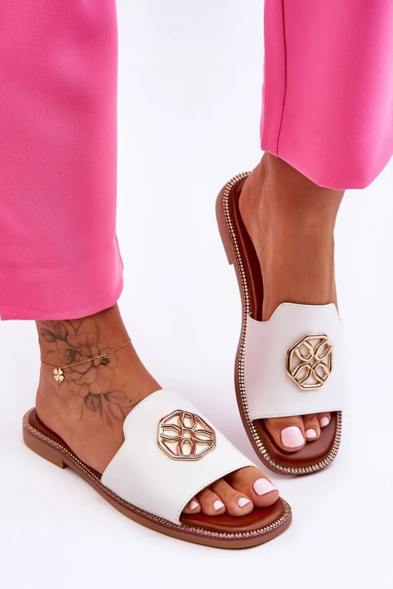 Damskie Klasyczne Klapki Na Płaskim Obcasie Białe Larotte