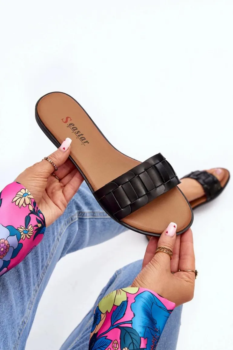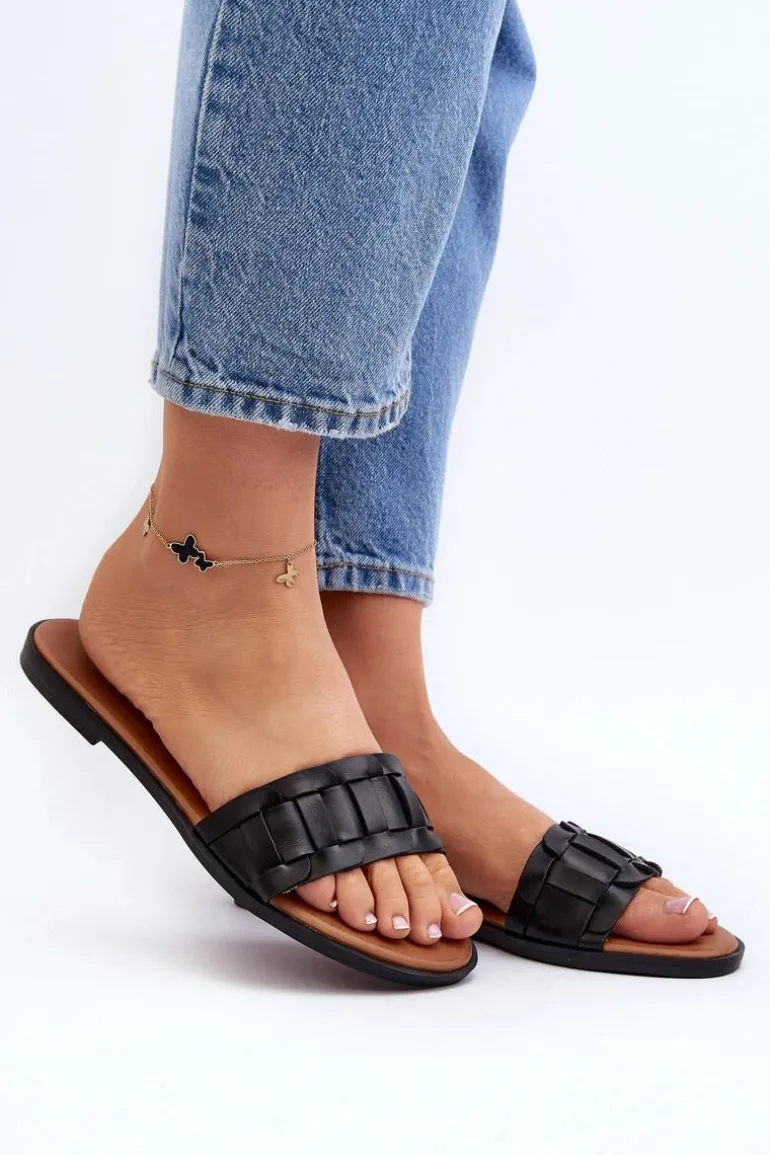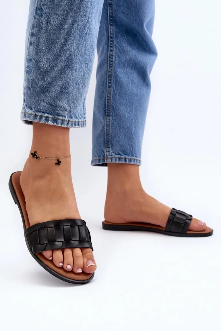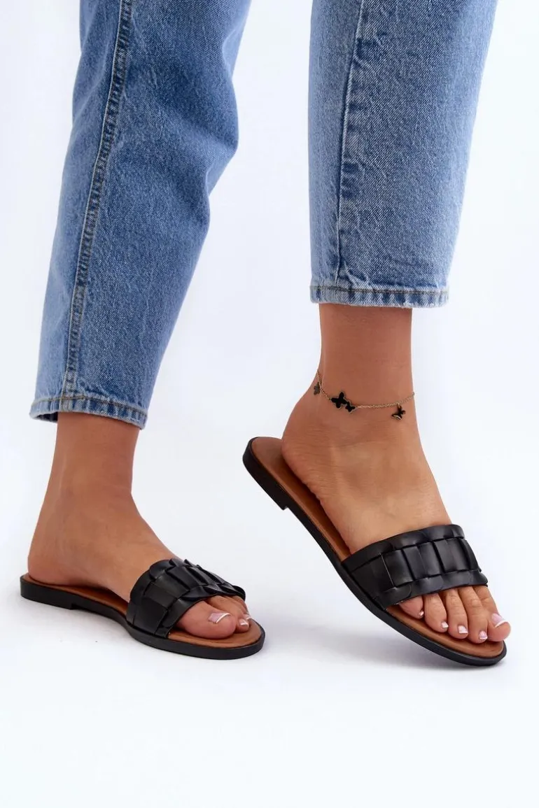 Damskie Klasyczne Klapki Na Płaskim Obcasie Czarne Namrita