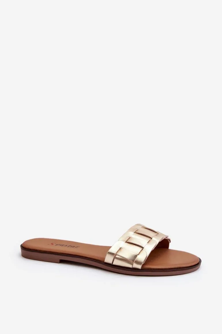 Klapki wykonane z eko skóry. Osadzone na płaskim obcasie. Klasyczny fason idealnie dopełni stylizację z letnimi sukienkami, spodniami i spódnicami. Miękka wkładka z eko skóry zapewni wygodę podczas użytkowania. Koniecznie powinnaś je mieć w swojej letniej garderobie! Przy wyborze rozmiaru prosimy sugerować się tabelą rozmiarów.