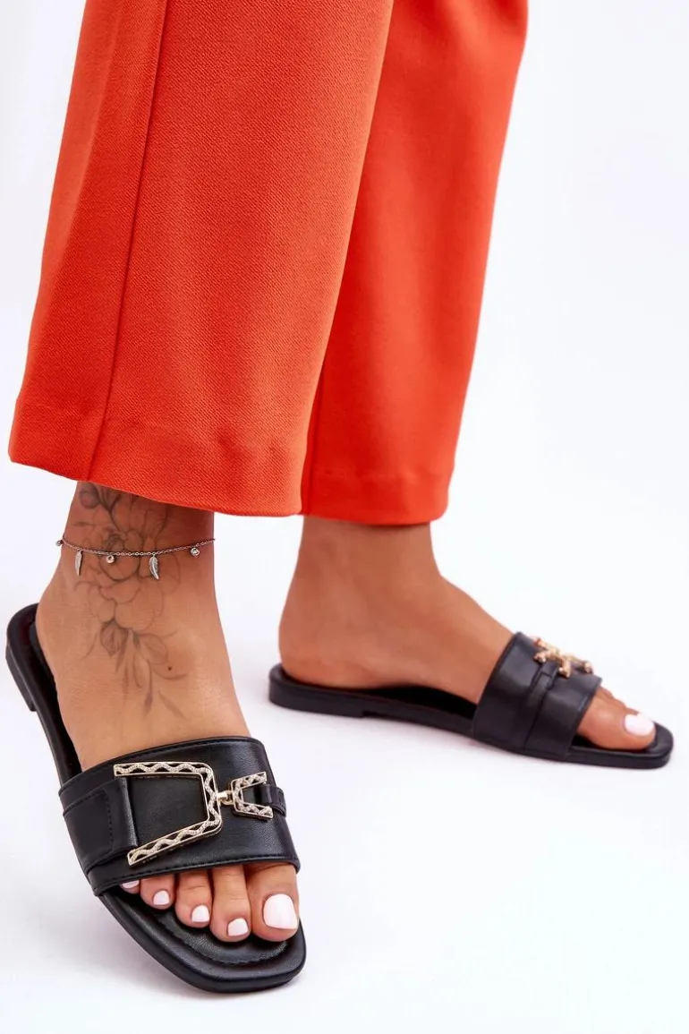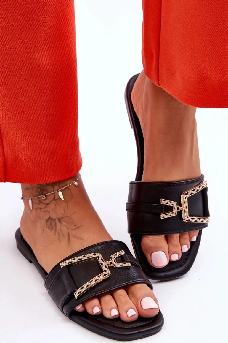 Damskie Klasyczne Klapki Z Ozdobą Czarne Impressive