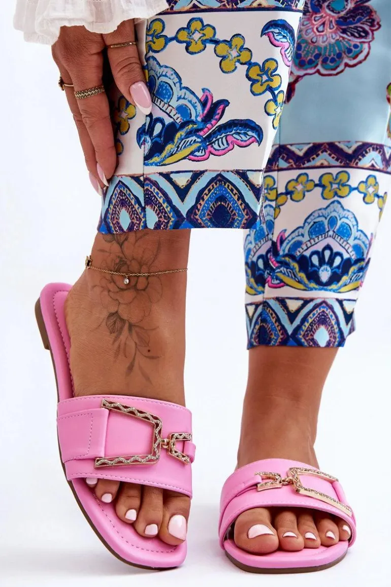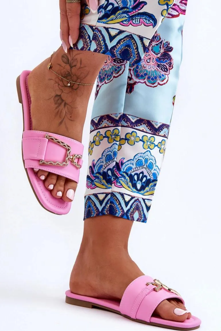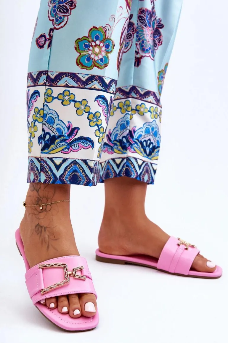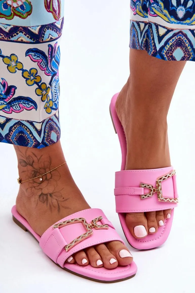 Damskie Klasyczne Klapki Z Ozdobą Różowe Impressive