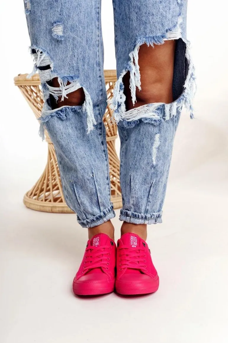 Damskie trampki polskiej marki BIG STAR to klasyczna forma i modny kolor. Kultowe już trampki pasują do wielu stylizacji. Buty dobrze dopasowują się do kształtu stopy, posiadają miękką, materiałową wkładkę. Ponadczasowy wzór dostępny jest w wielu kolorach. Koniecznie sprawdź całą naszą kolekcję butów BIG STAR. Przy wyborze rozmiaru prosimy sugerować się tabelą rozmiarów.