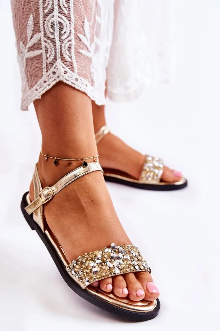 Damskie Klasyczne Sandałki Z Ozdobami Złote Florella