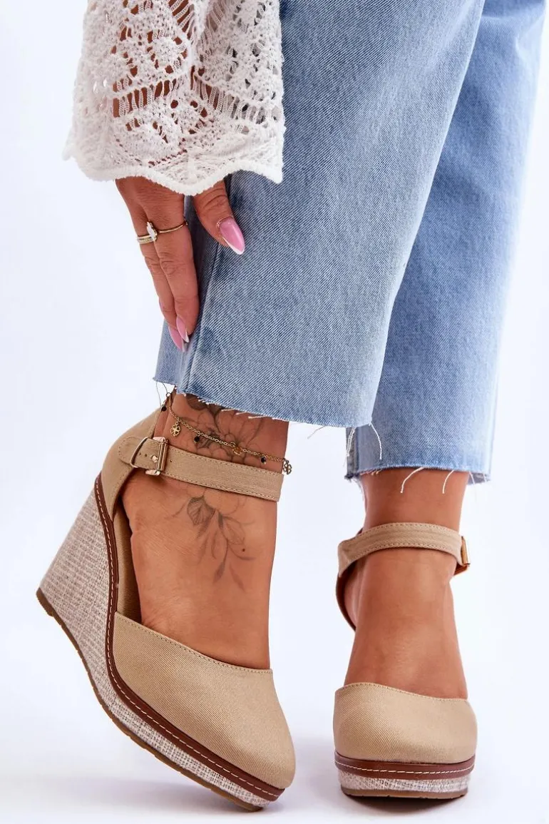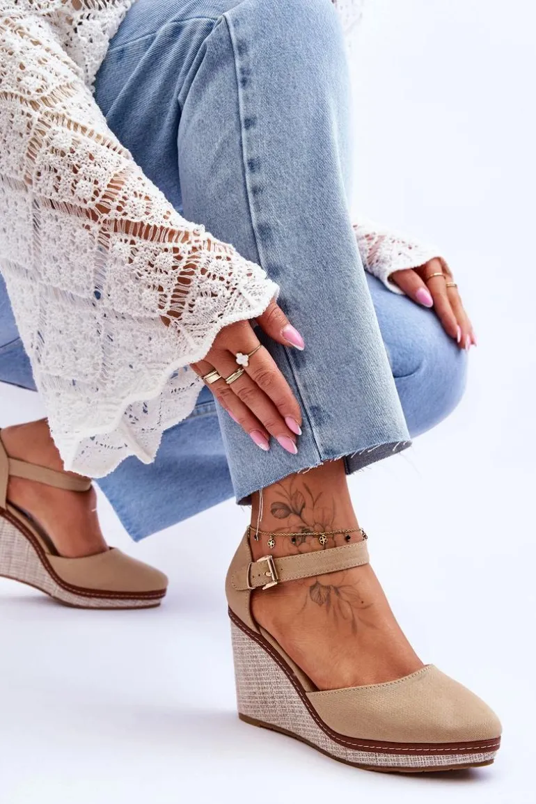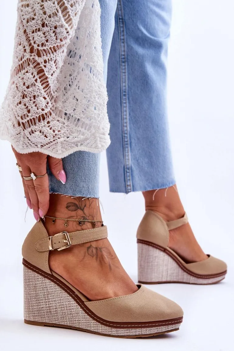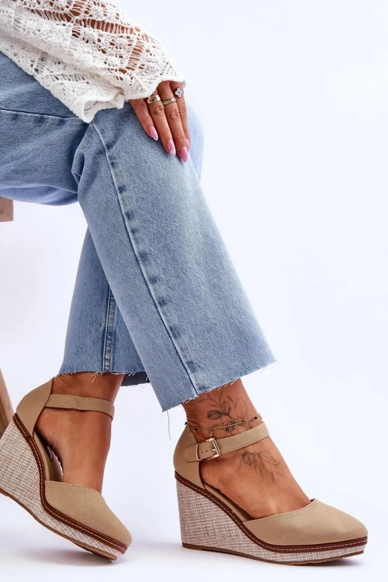 Damskie Klasyczne Sandały Na Koturnie Ciemnobeżowe Malani
