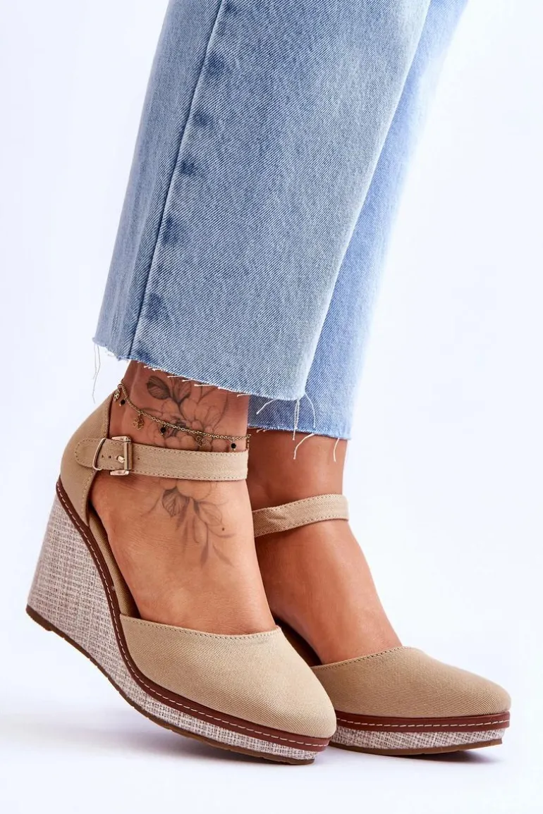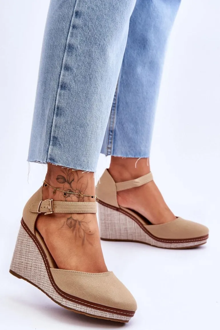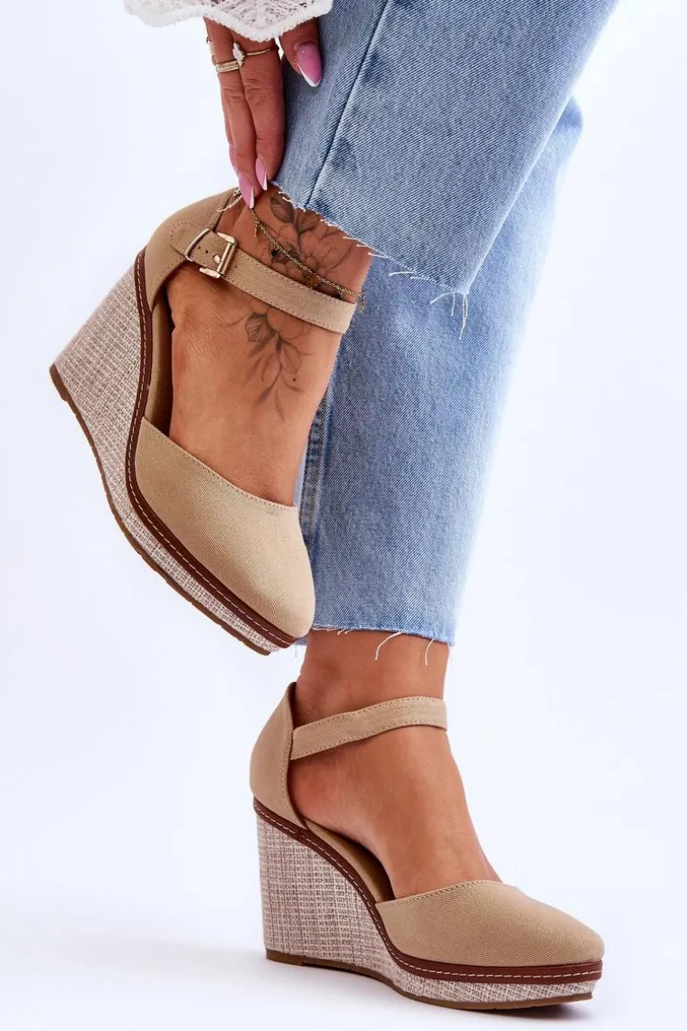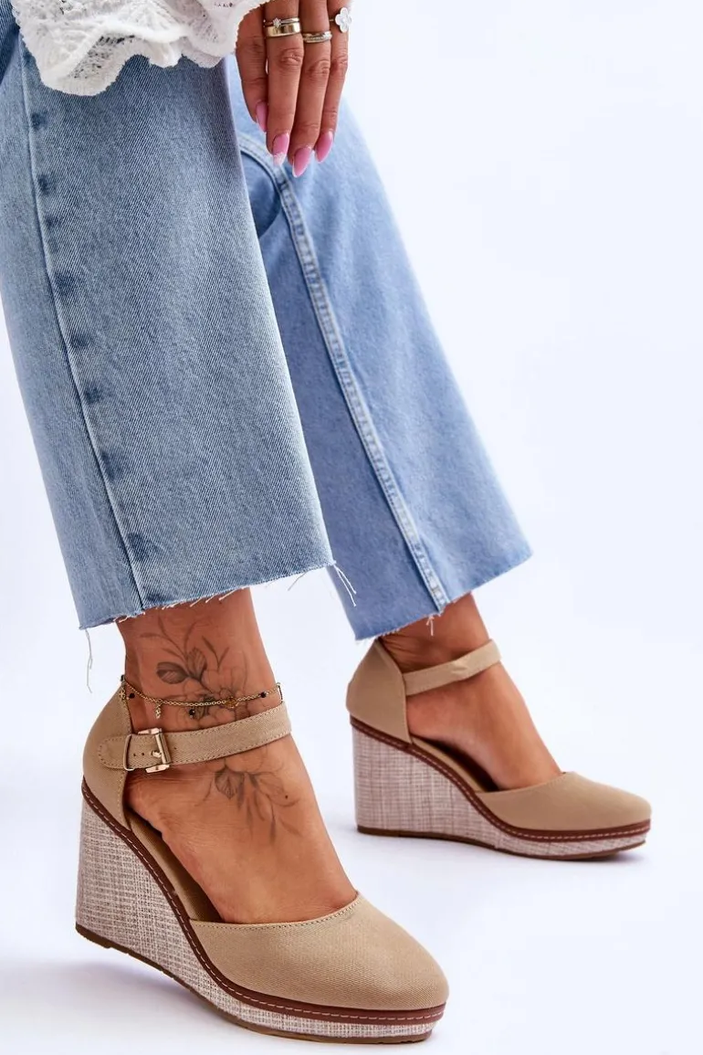 Damskie Klasyczne Sandały Na Koturnie Ciemnobeżowe Malani