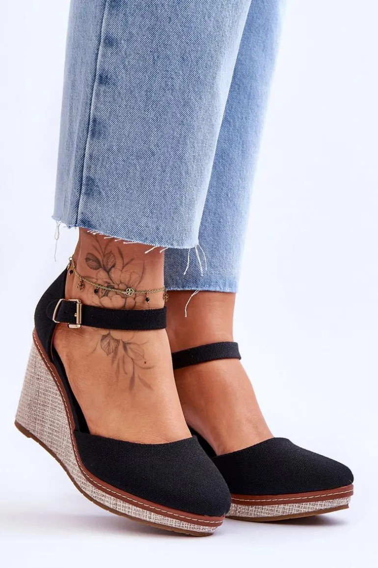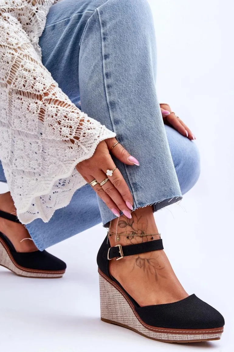 Damskie Klasyczne Sandały Na Koturnie Czarne Malani