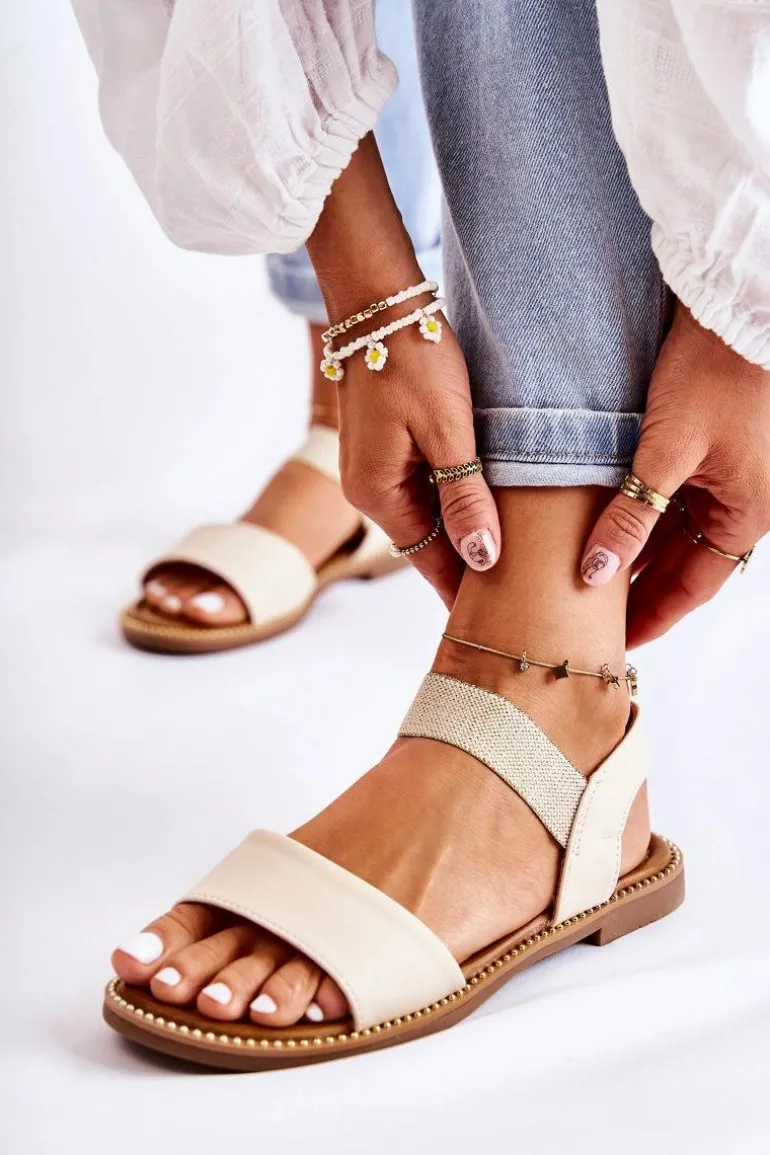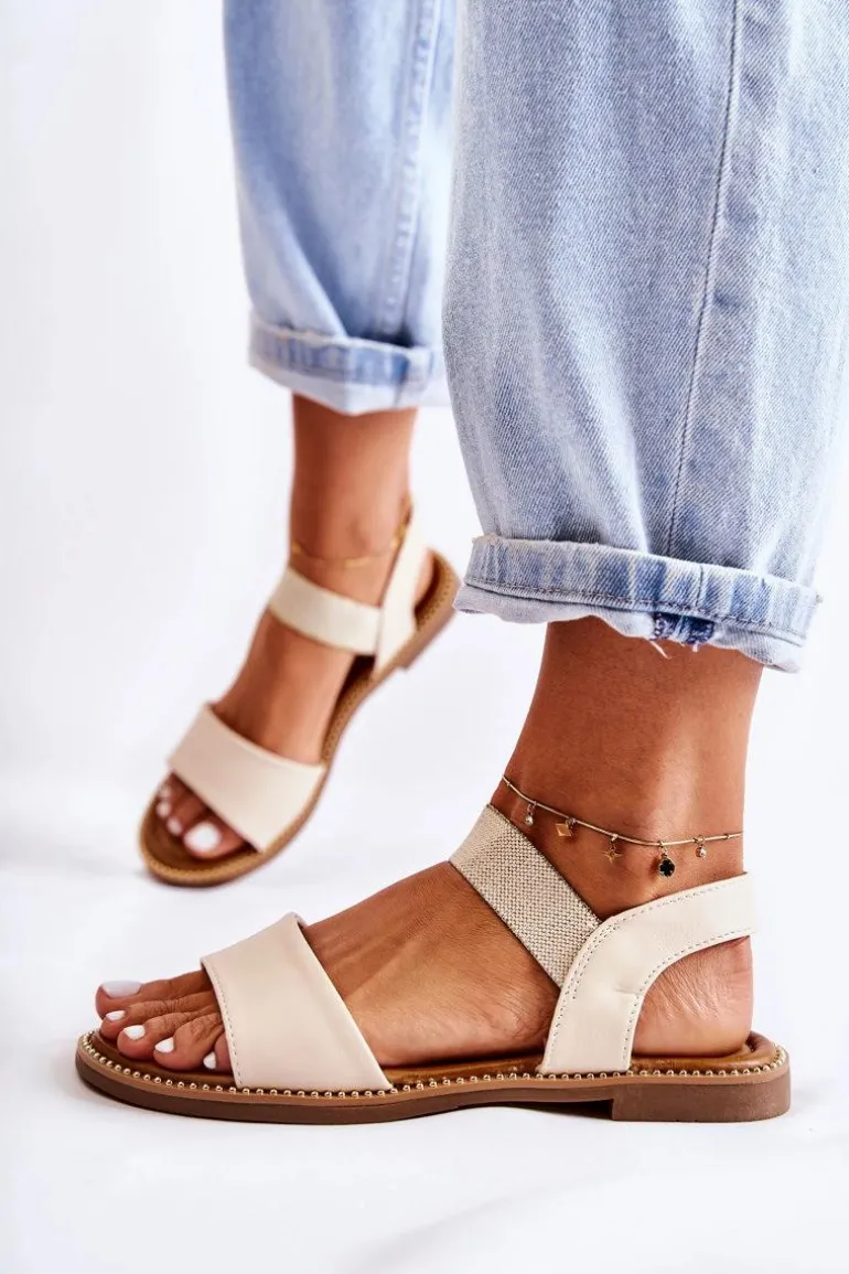 Damskie Klasyczne Sandały Na Płaskim Obcasie Beżowe Catis