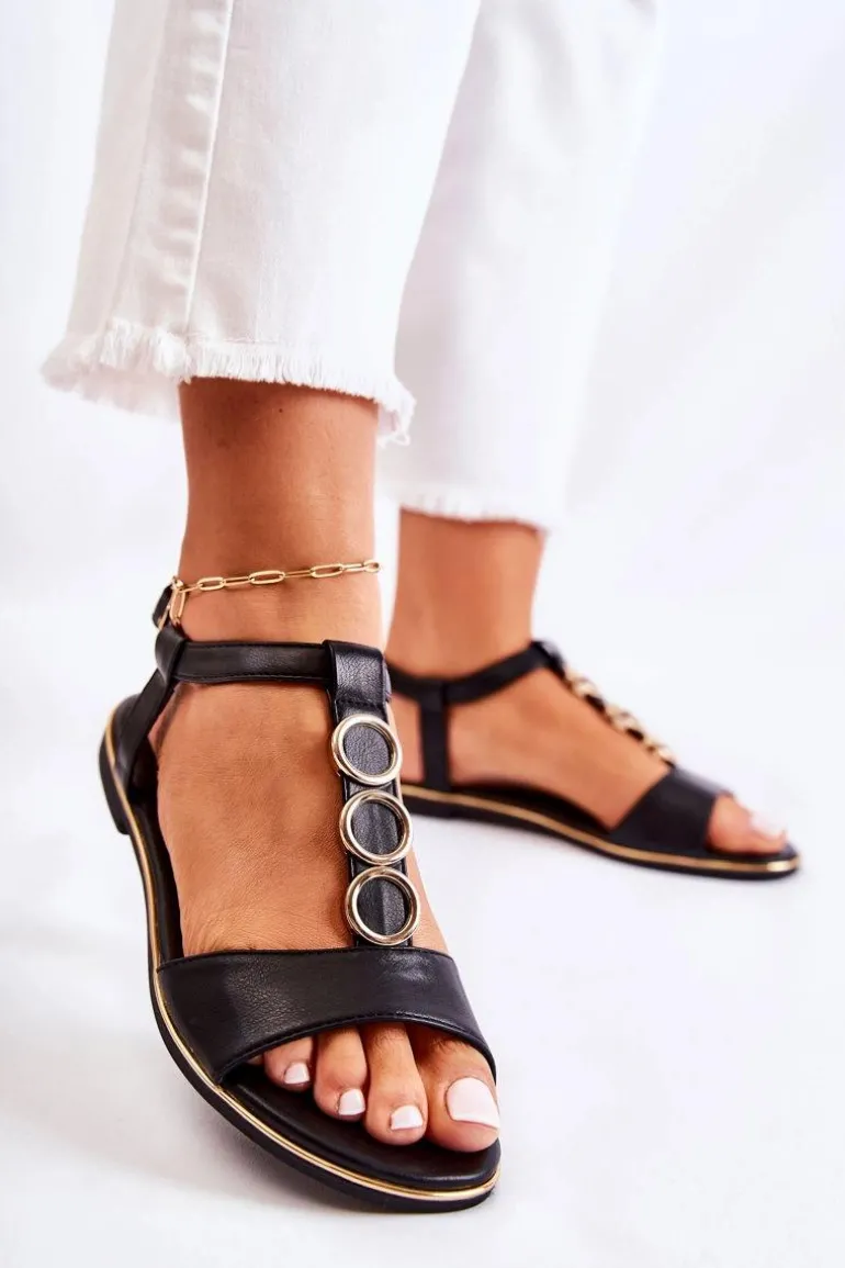 Szukasz lekkiego i przewiewnego obuwia na upalne dni? Te sandały będą idealne! Wykonane z eko skóry. Posiadają zdobienie w postaci kół na środkowym pasku. Zapinane wokół kostki na regulowany pasek ze sprzączką, który pozwoli na odpowiednie dopasowanie obuwia. Nosek odkryty, zaokrąglony. Osadzone na płaskim obcasie, z podeszwą z gumowego tworzywa, która jest dodatkowo antypoślizgowa. Wkładka miękka, wygodna, wykonana z eko skóry. Przy wyborze rozmiaru prosimy kierować się tabelą rozmiarów.