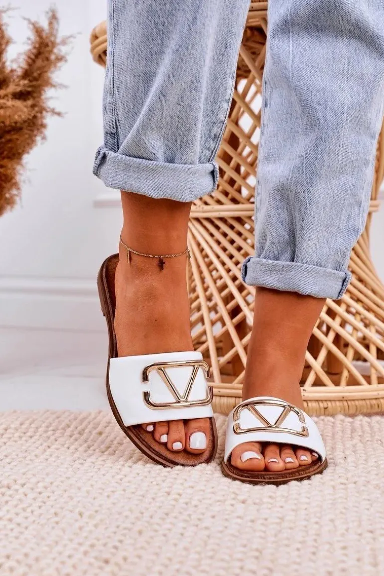 Damskie Klasyczne Skórzane Klapki Białe Evie