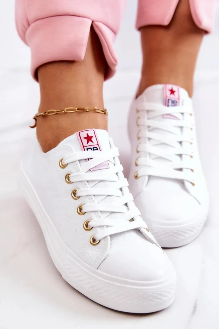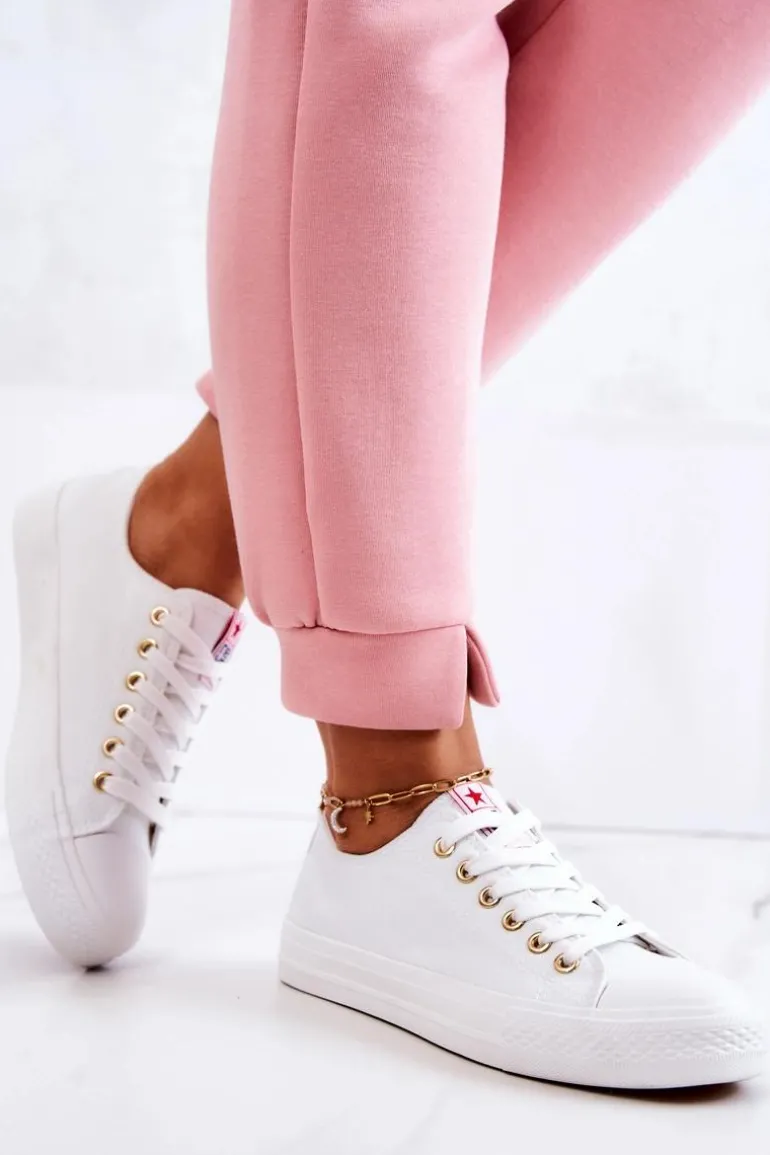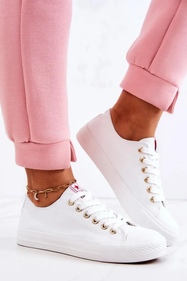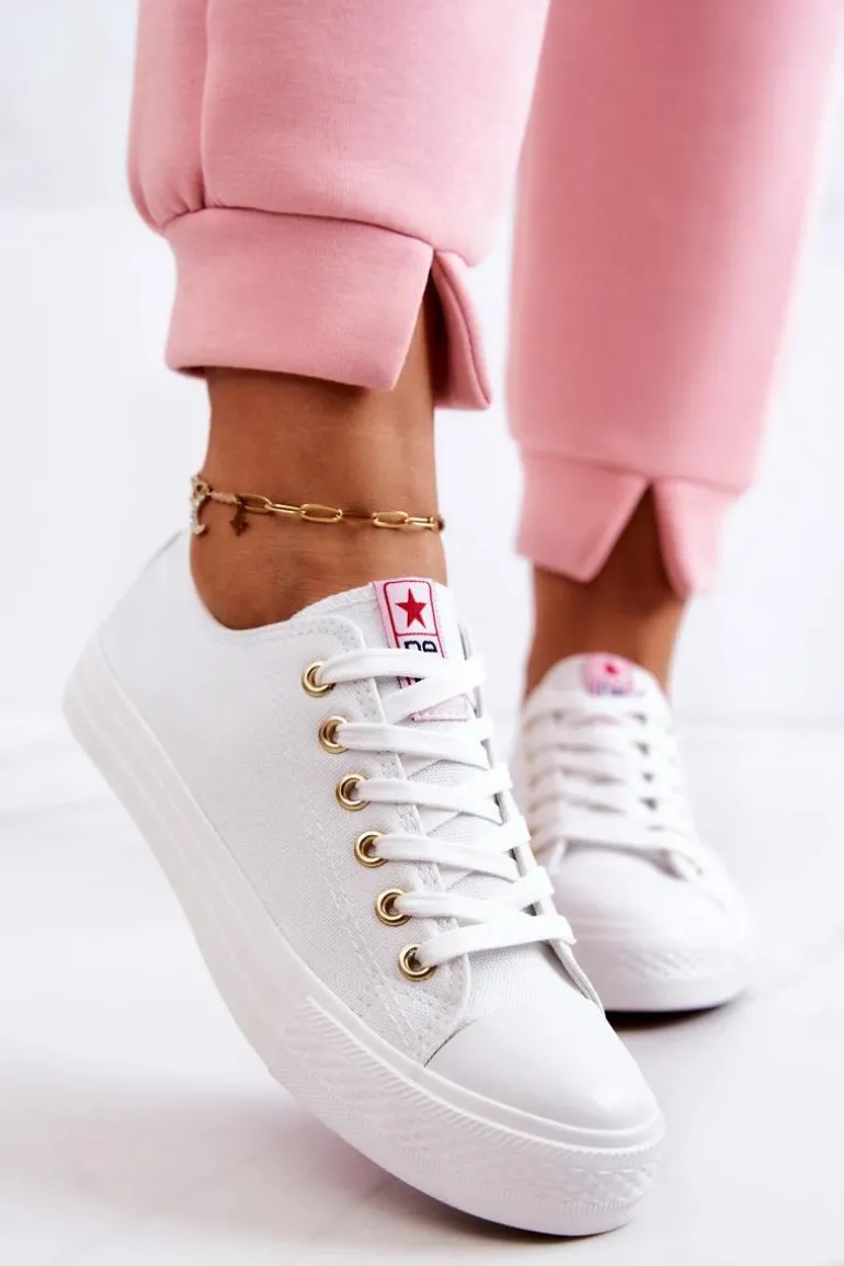 Klasyczne trampki damskie. Buty posiadają gumową, antypoślizgową podeszwę oraz miękką cholewkę. Ponadczasowy model, dostępny w wielu pięknych kolorach! Klasyczny, wiązany model. Buty posiadają wzmocnienie na nosku w postaci gumowego tworzywa. Przy wyborze rozmiaru prosimy sugerować się tabelą rozmiarów.
