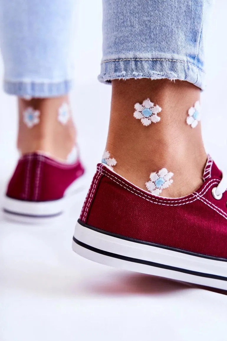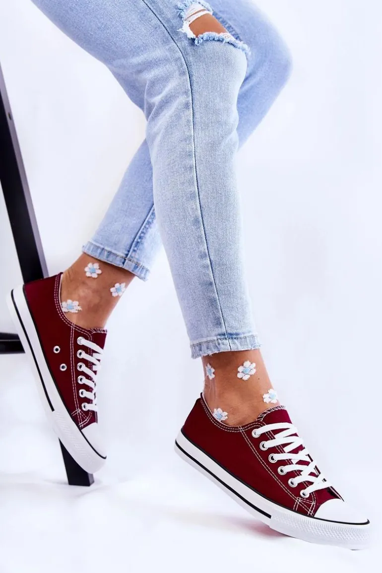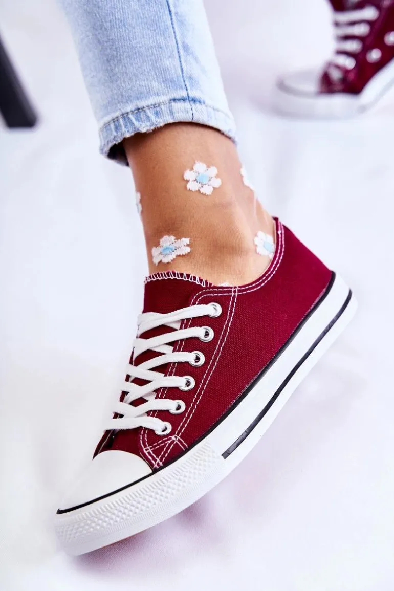 Damskie Klasyczne Trampki Wiązane Bordowe Be Mine