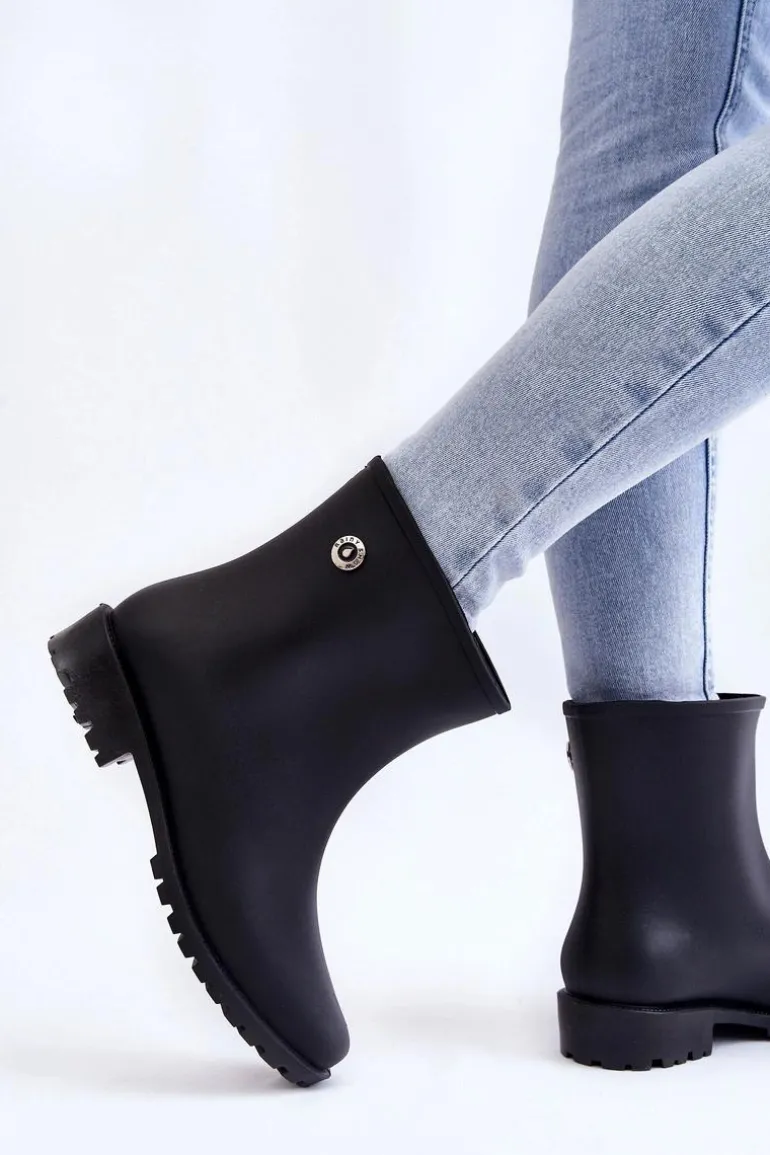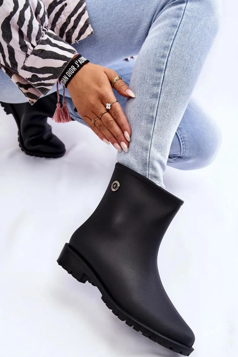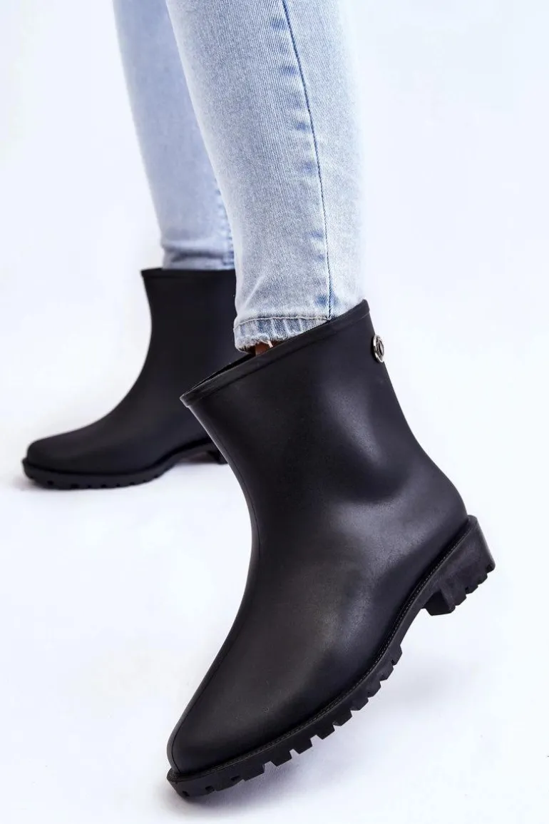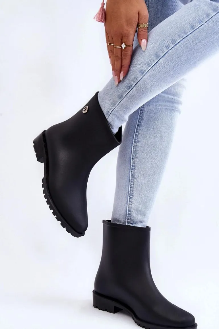 Damskie kalosze zostały wykonane z gumowego tworzywa, które jest odporne na wiatr i deszcz. Model wsuwany. Ozdobione z boku cholewki małym emblematem. Ocieplana kocem obuwniczym wkładka zapewni Ci wygodę podczas użytkowania. Dodatkowo jest wyciągana. Buty zostały osadzone na gumowej, traperowej podeszwie z płaskim obcasem. Przy wyborze rozmiaru prosimy sugerować się tabelą rozmiarów.