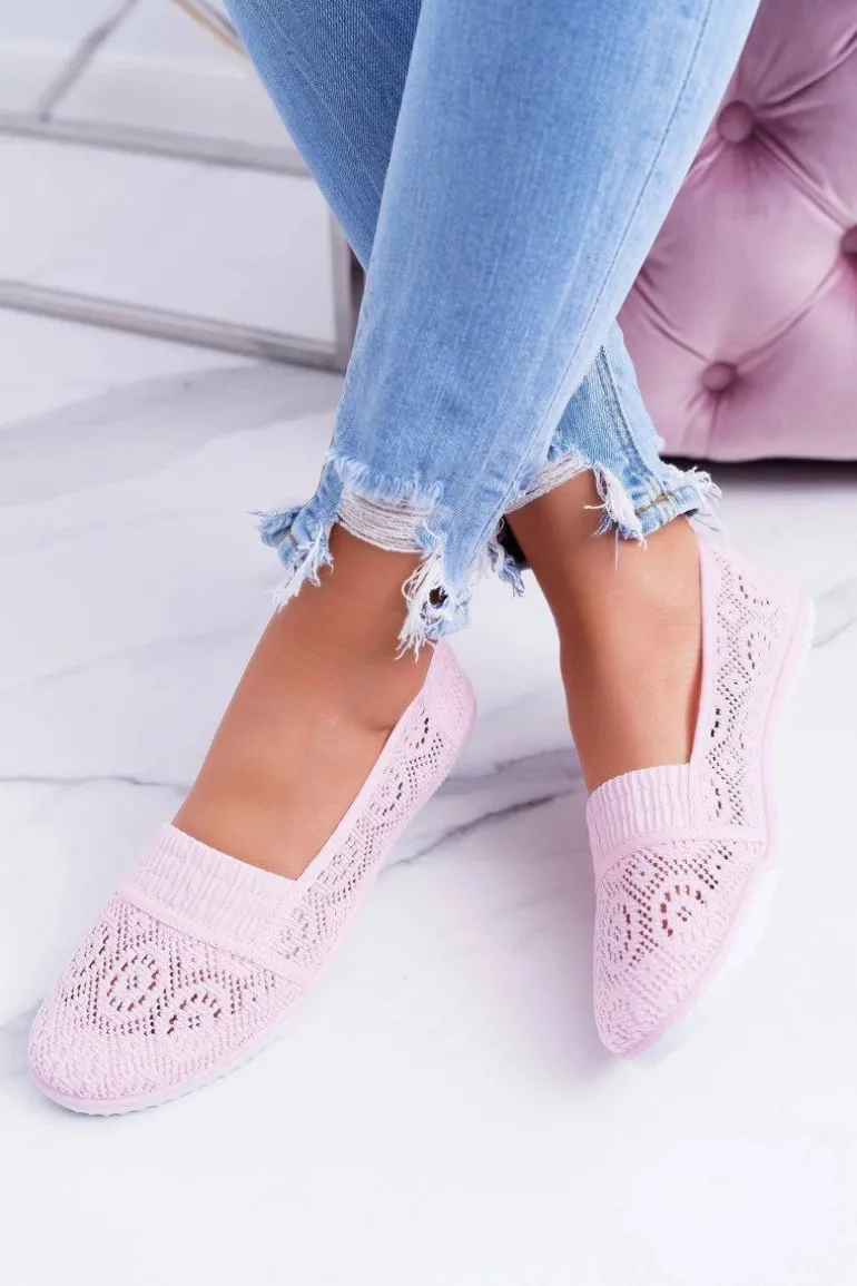 Damskie Koronkowe Balerinki Pudrowy Róż Sensitive
