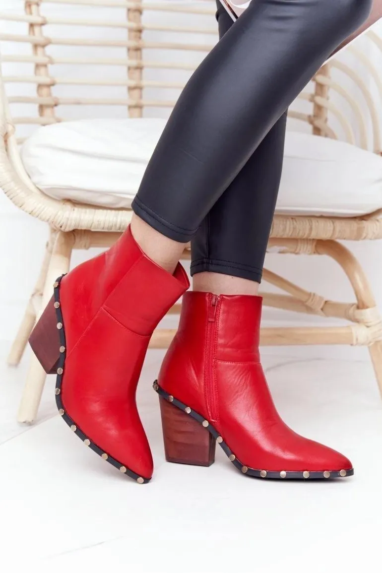 Damskie Kowbojskie Botki Na Obcasie Lu Boo Czerwone