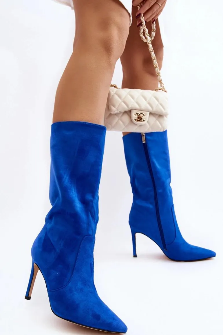 Kozaki damskie wykonane z eko zamszu. Osadzone na zgrabnej szpilce, co dodaje im kobiecego uroku, a jednocześnie gwarantuje elegancję. Ocieplenie w postaci koca obuwniczego zapewnia ciepło i komfort w chłodniejsze dni. Delikatnie szpiczaste noski optycznie wysmuklają nogi, dodając subtelnego wdzięku. Suwak na całej długości cholewki ułatwia zarówno zakładanie, jak i zdejmowanie butów. Ten wyjątkowy model zasługuje na swoje miejsce w Twojej garderobie! Przy wyborze rozmiaru prosimy sugerować się tabelą rozmiarów.