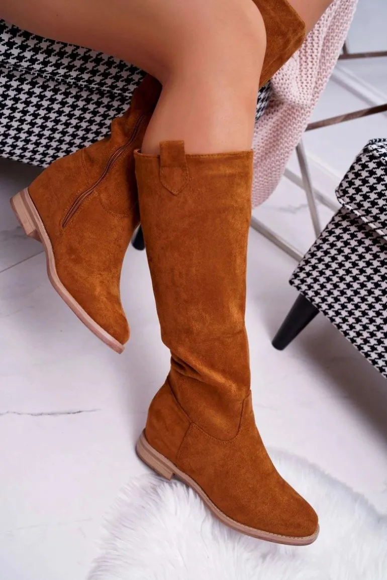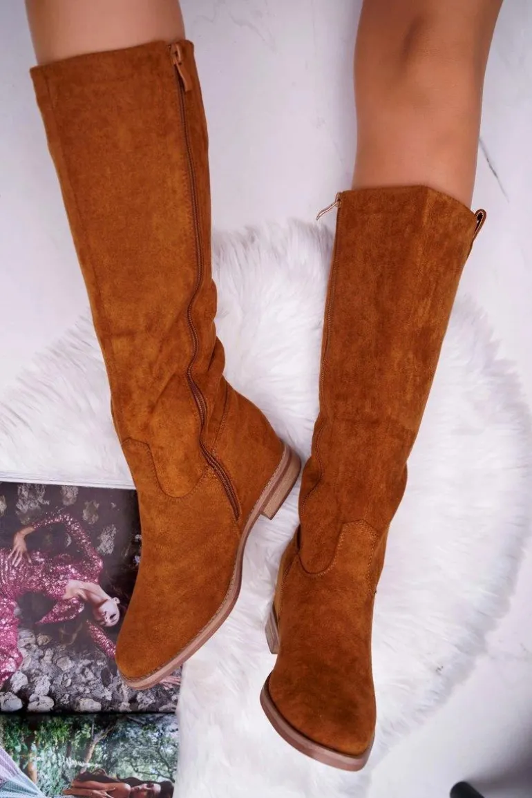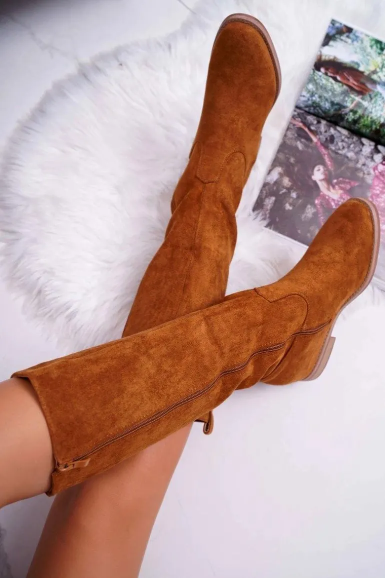 Damskie Kozaki Do Połowy Łydki Zamszowe Camel Temet